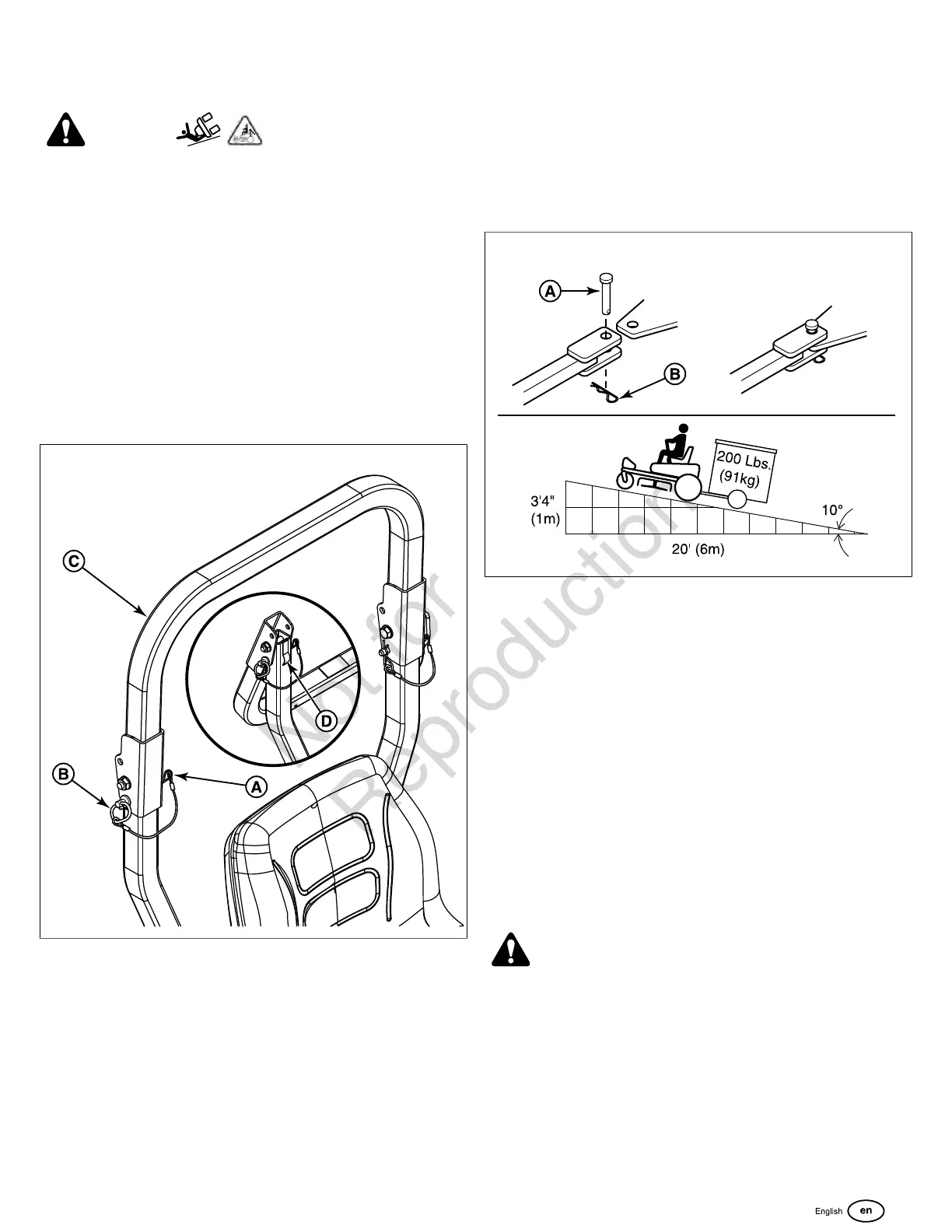 2. Raise the roll bar (C) until the top of the roll bar (C)