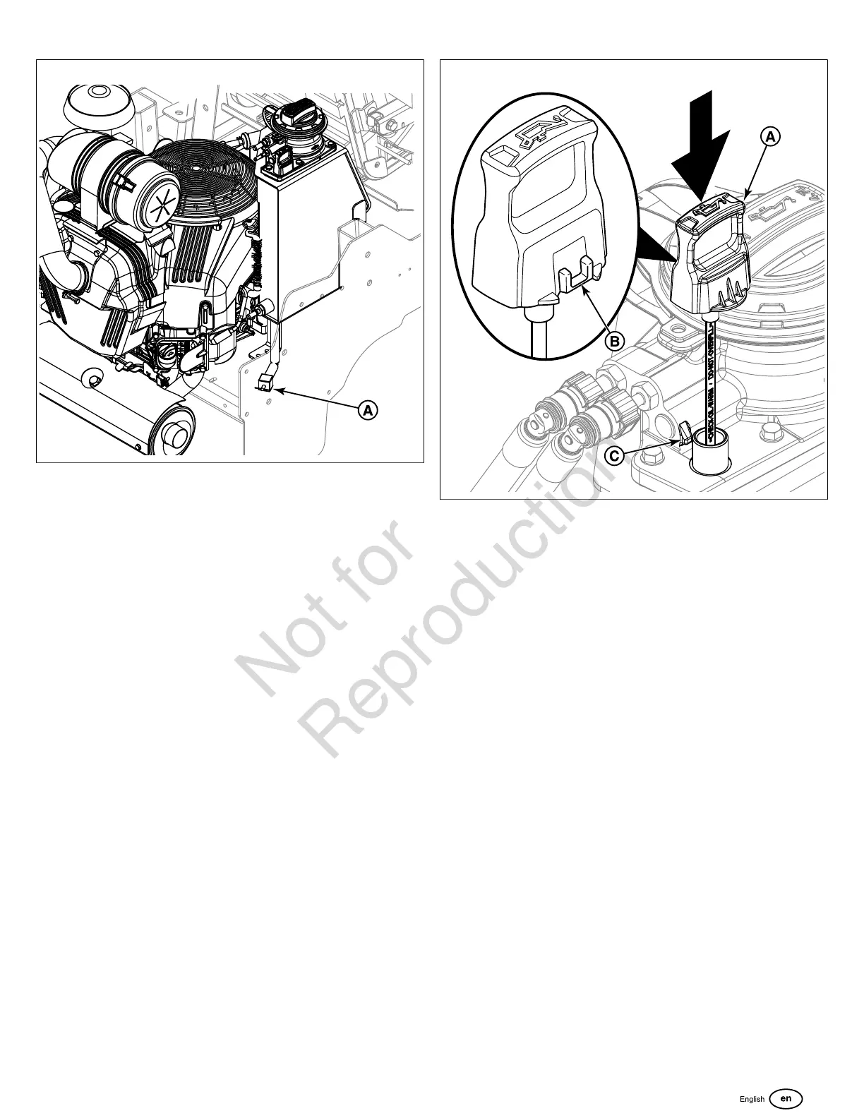 11. Install the engine oil dipstick (A, Figure 30) into the tank