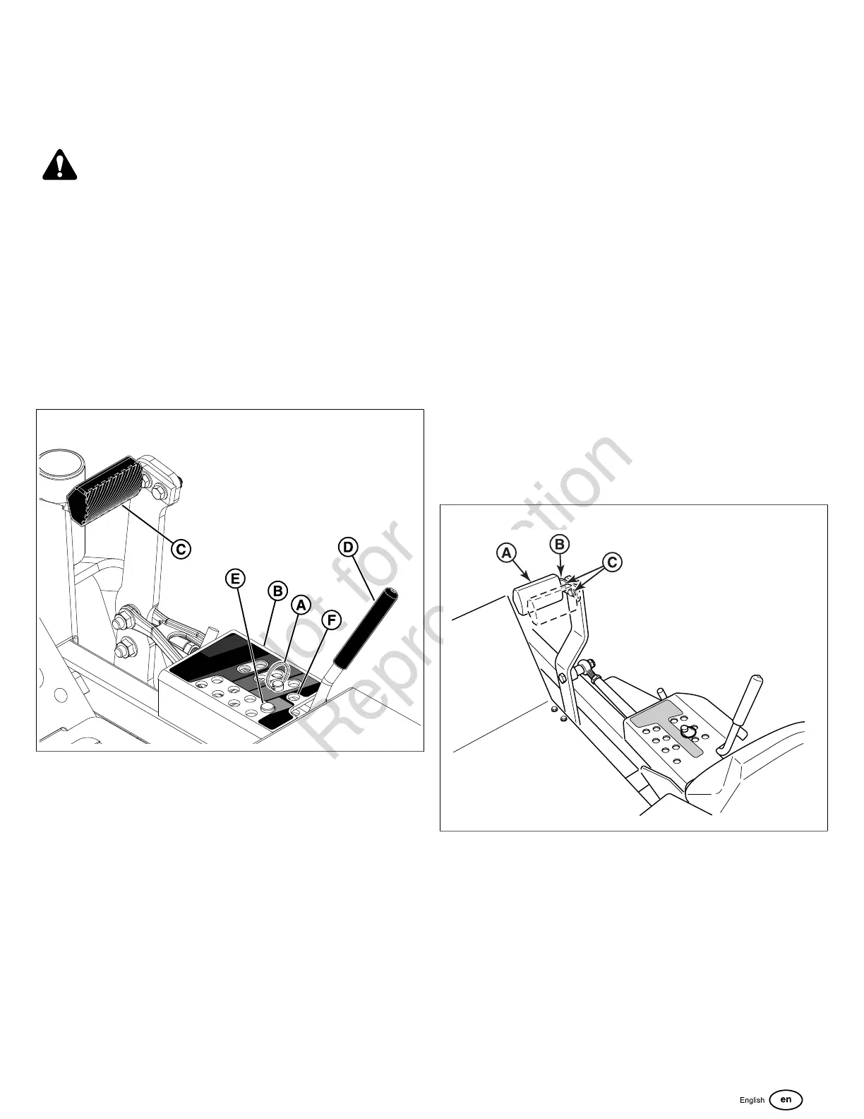 1. While sitting in the operator’s seat, press the deck lift foot