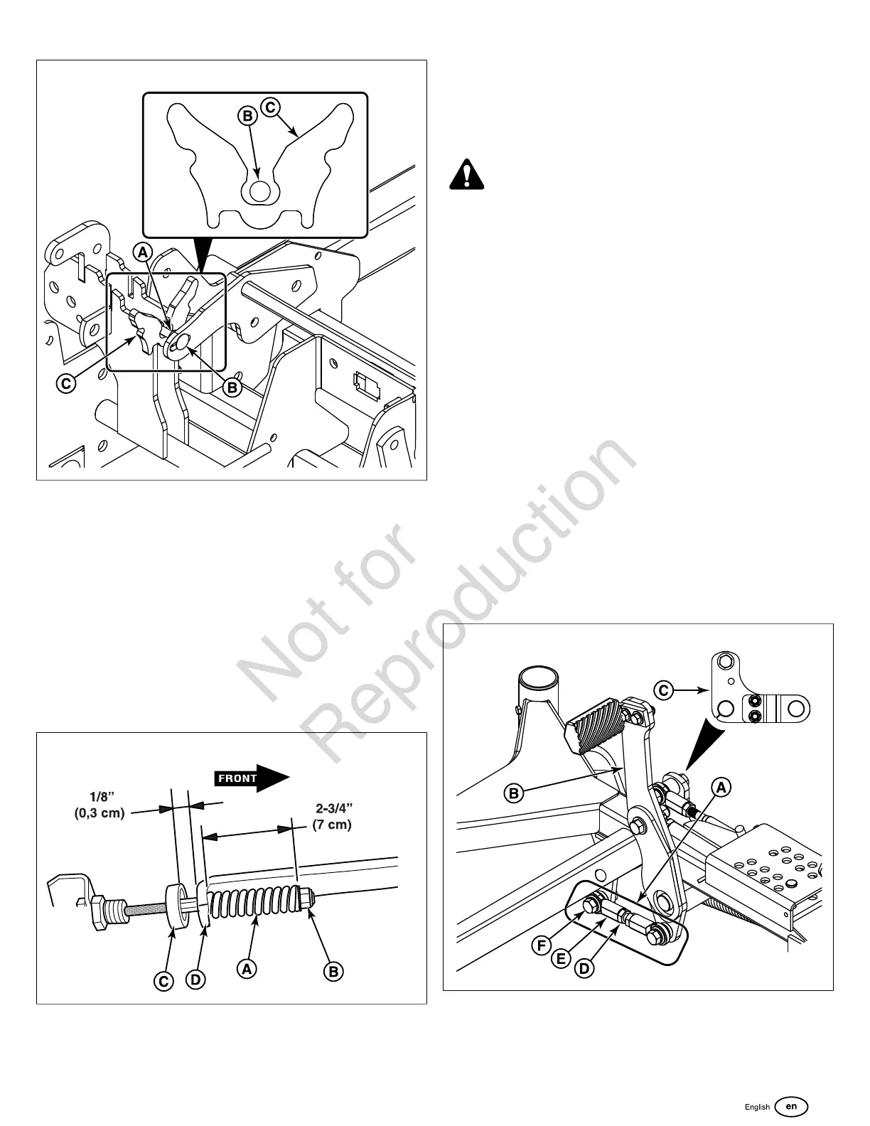 the deck lift pedal plate (B) to the deck lift shaft. Prior to