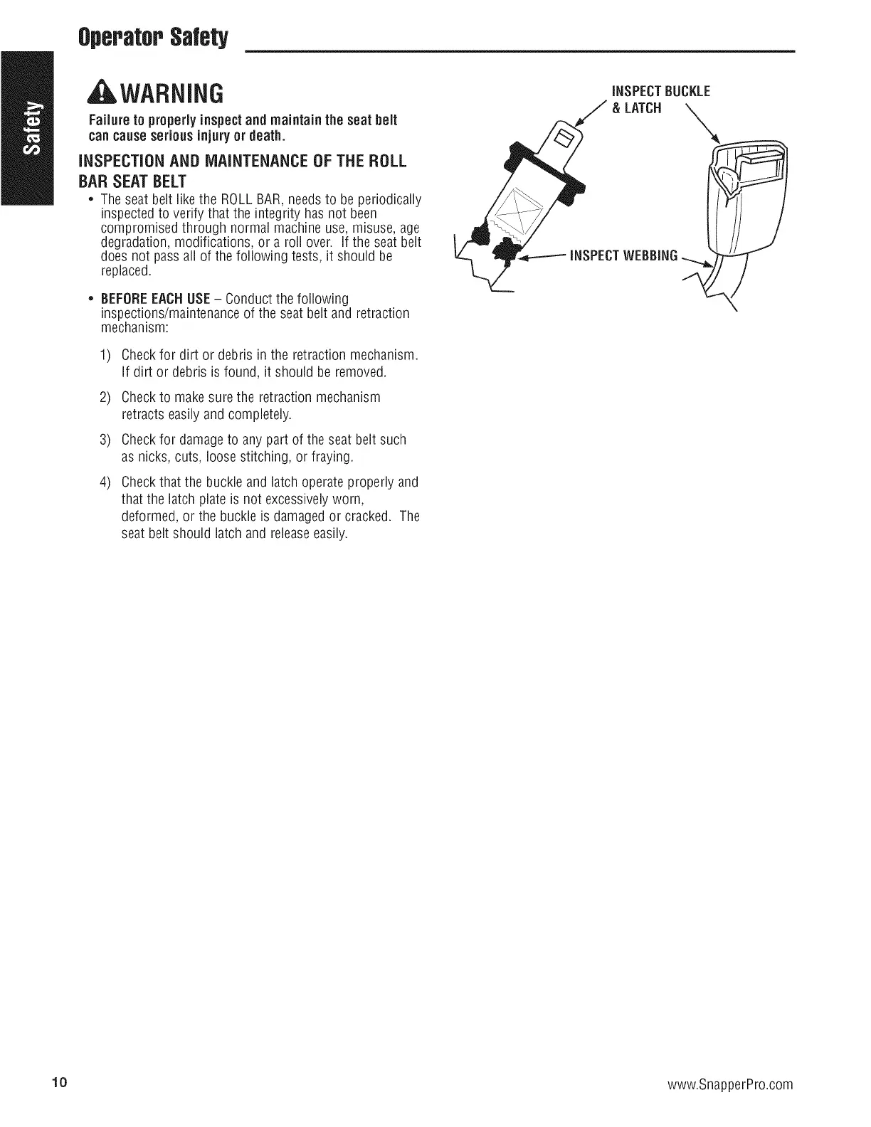 • The seat belt likethe ROLL BAR,needsto be periodically
