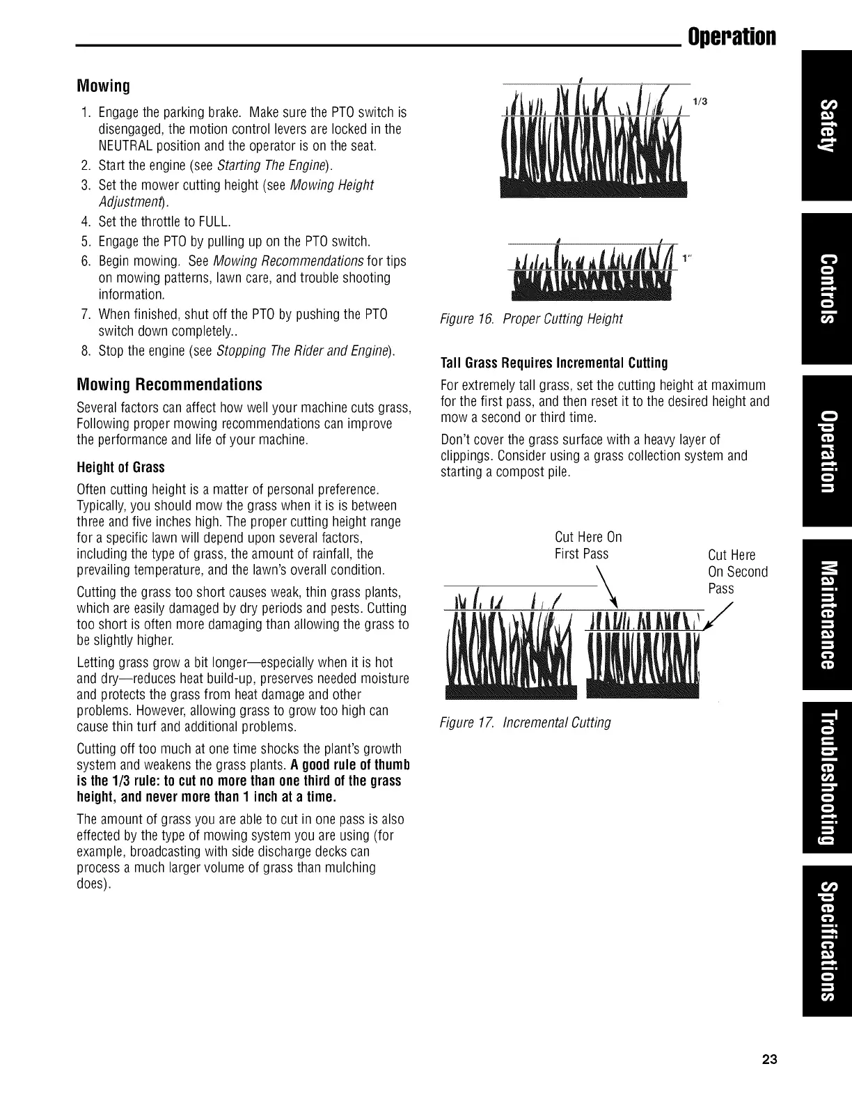 6. Begin mowing. See Mowing Recommendationsfor tips