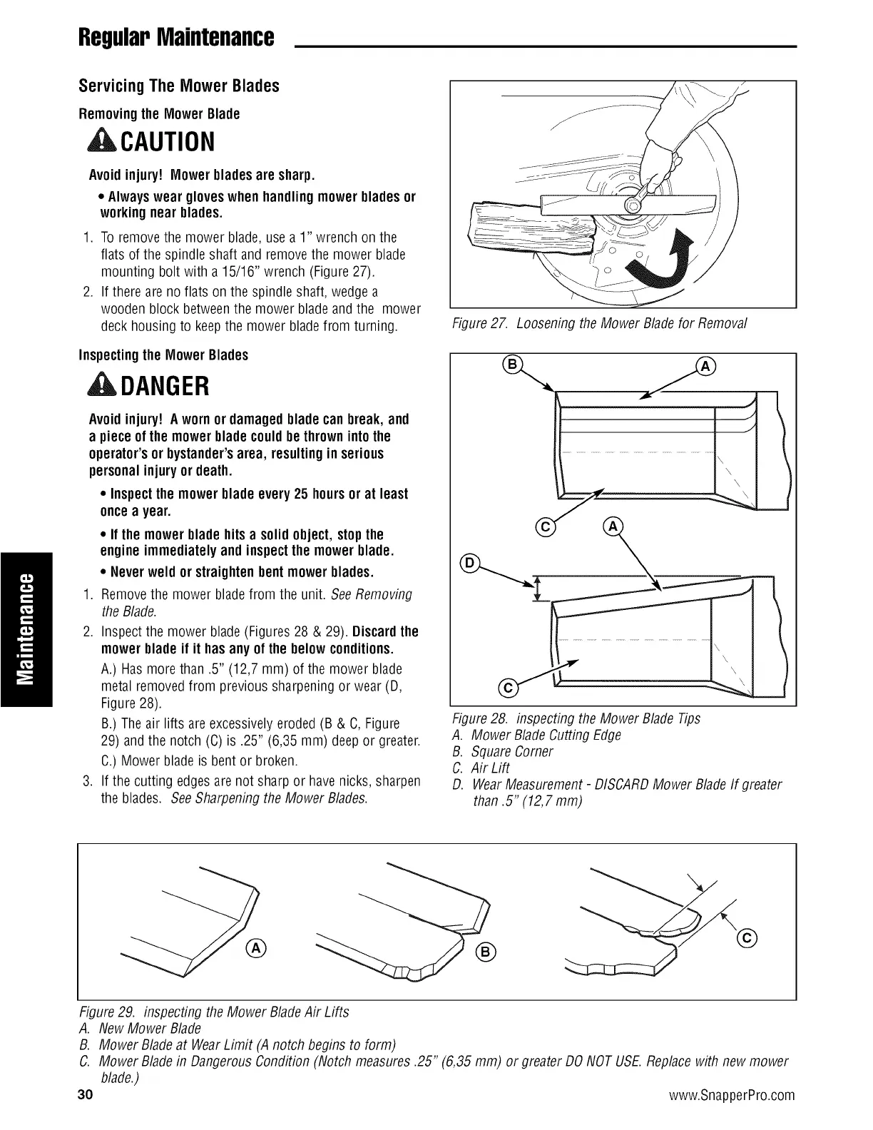 2. Inspect the mower blade (Figures 28 & 29). Discardthe