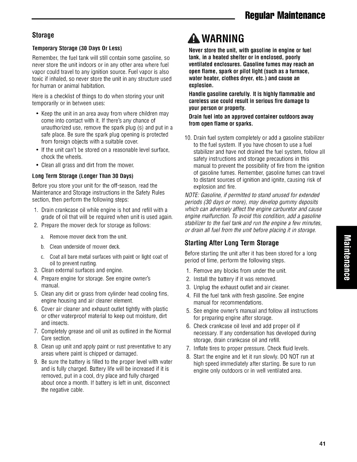 or drain aft fuel from the unit before placing it in storage.