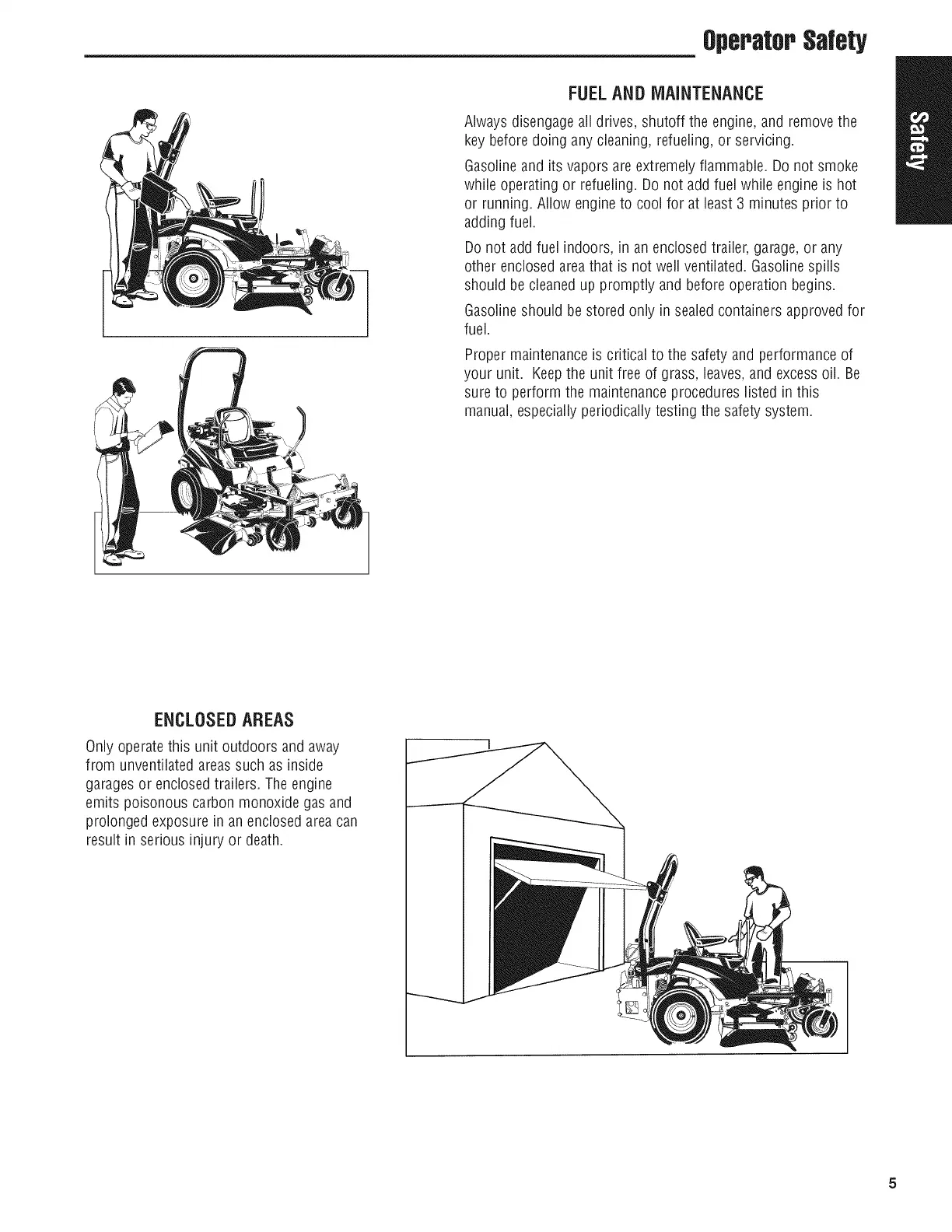 Donot add fuel indoors, in an enclosed trailer, garage,or any