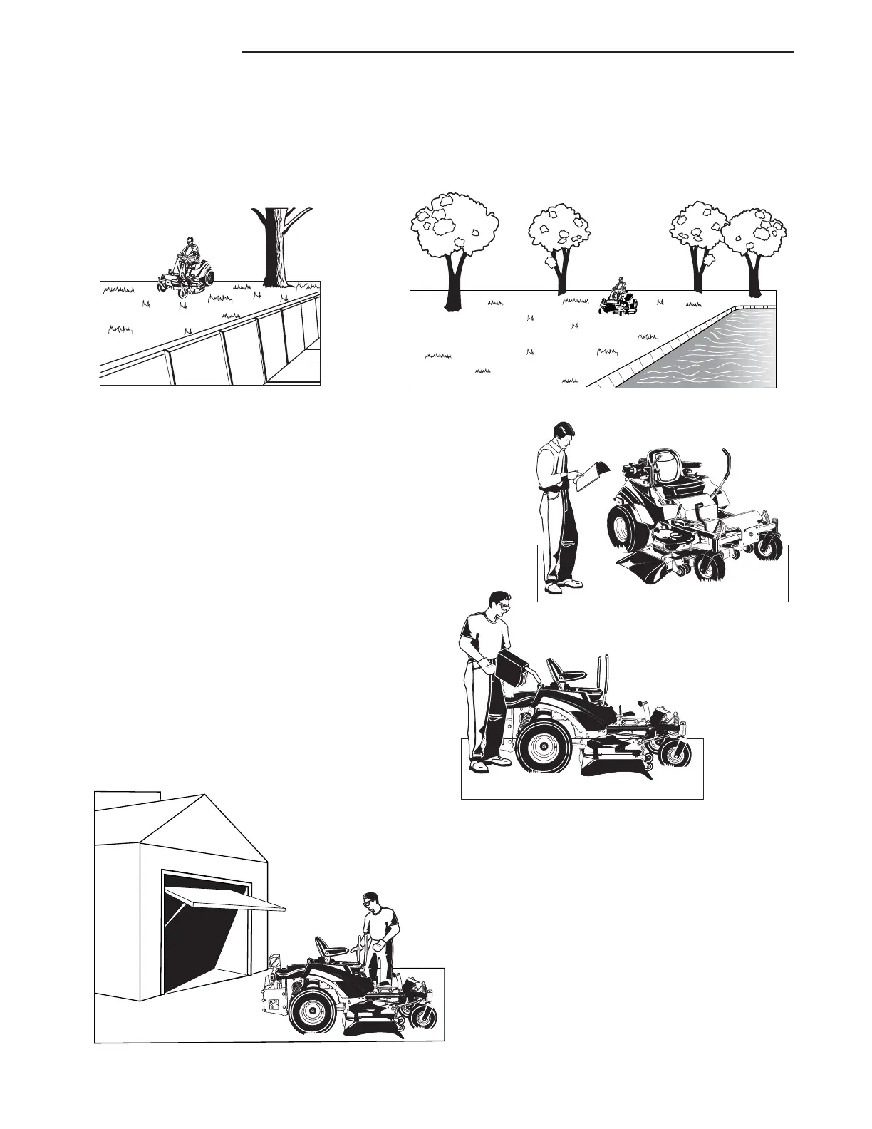 of clearance around these hazards and hand-trim with a walk behind mower or string trimmer. Wheels dropping over