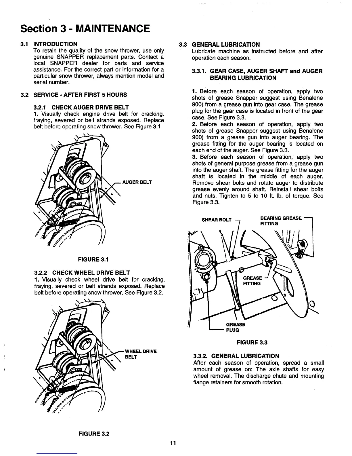 Snapper 10305 - Checking Auger Drive Belt; Checking Wheel Drive Belt; Lubricate Gear Case; Lubricate Auger & Bearing