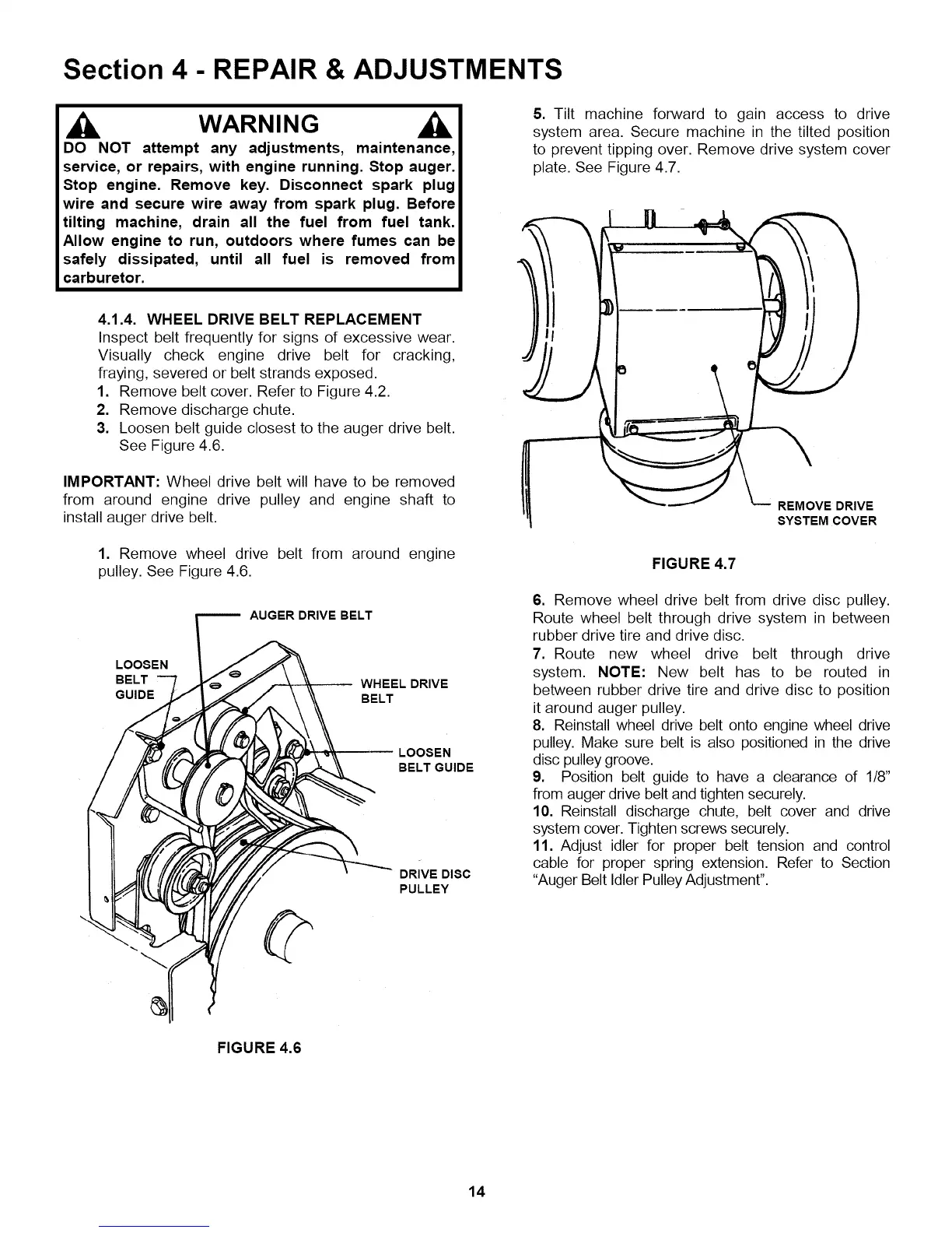 4.1.4. WHEEL DRIVE BELT REPLACEMENT
