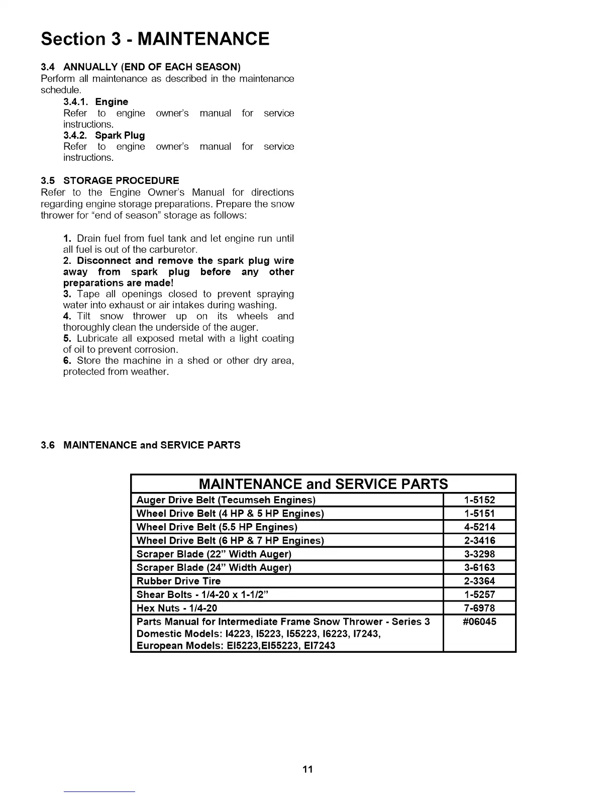 3.6 MAINTENANCE and SERVICE PARTS
