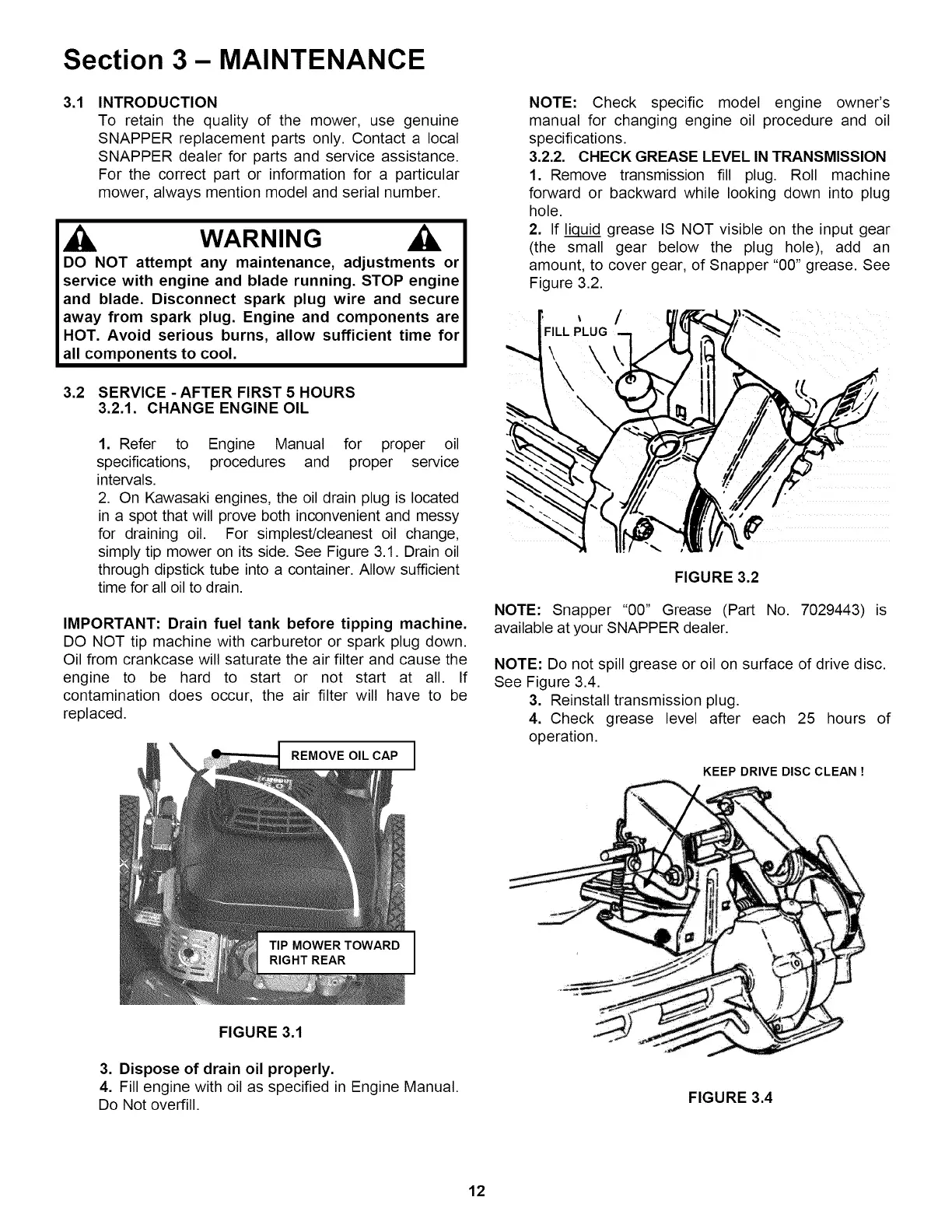 simply tip mower on its side. See Figure 3.1. Drain oil