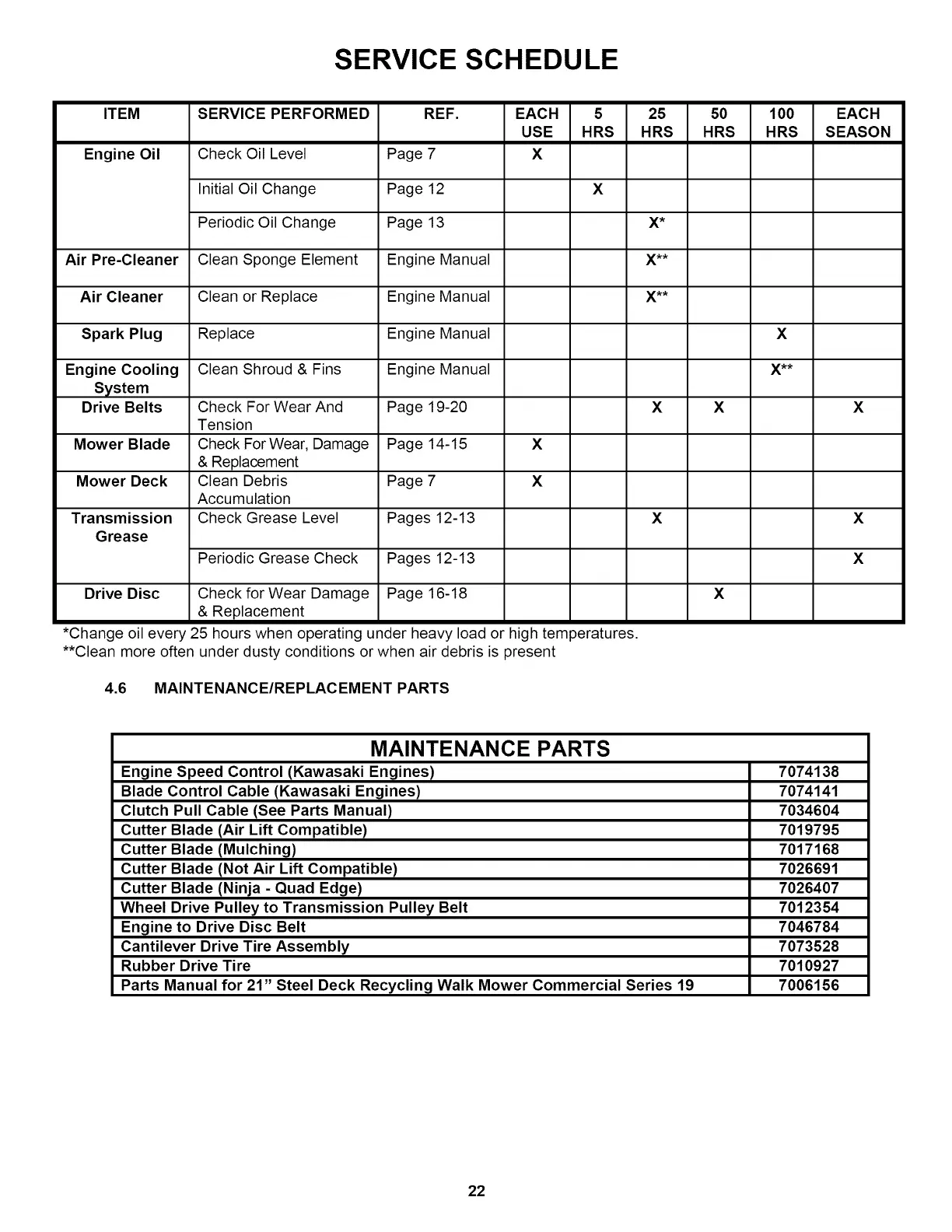 Parts Manual for 21" Steel Deck Recycling Walk Mower Commercial Series 19 7006156