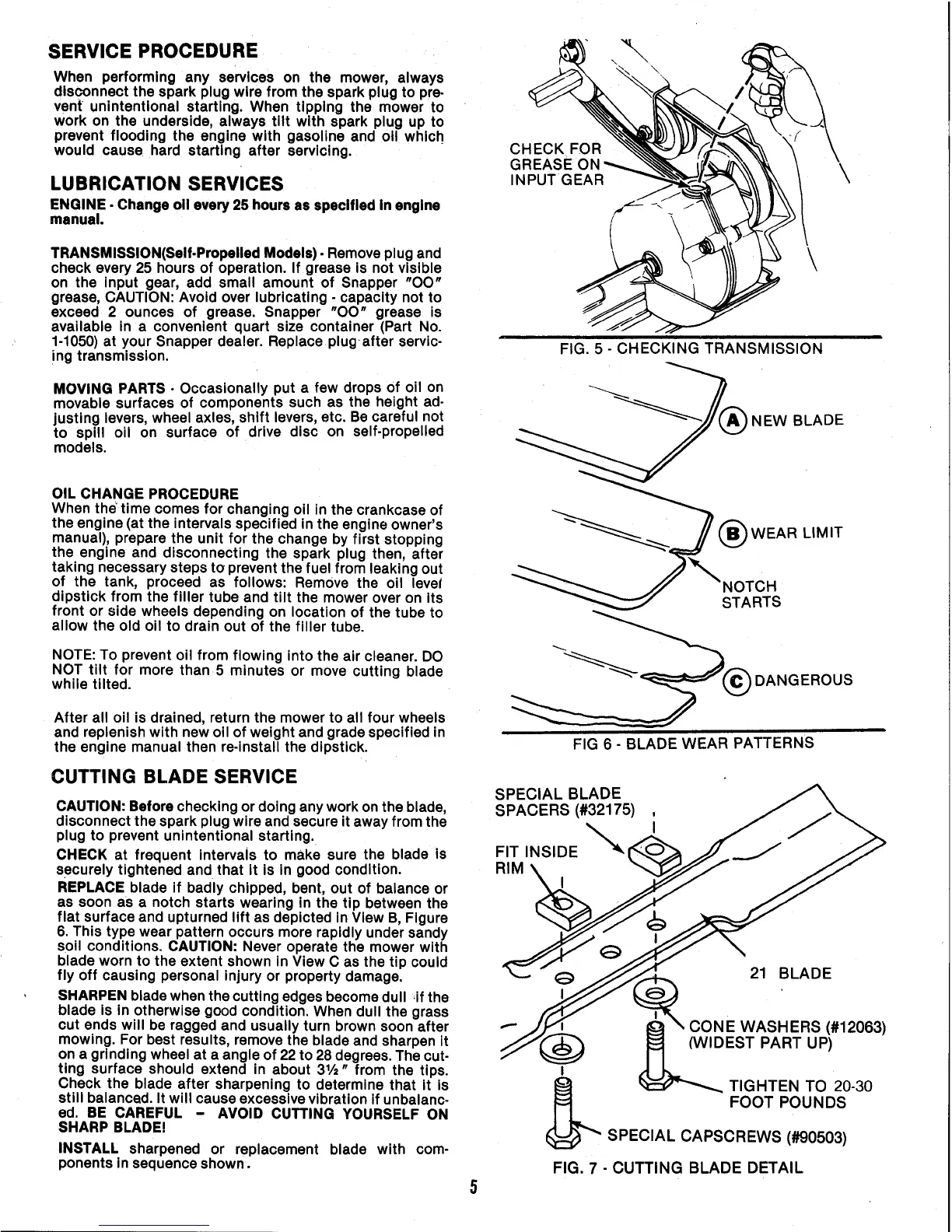 Snapper 214X4PR - Service; Lubrication Services; Cutting Blade Service; Oil Change Procedure