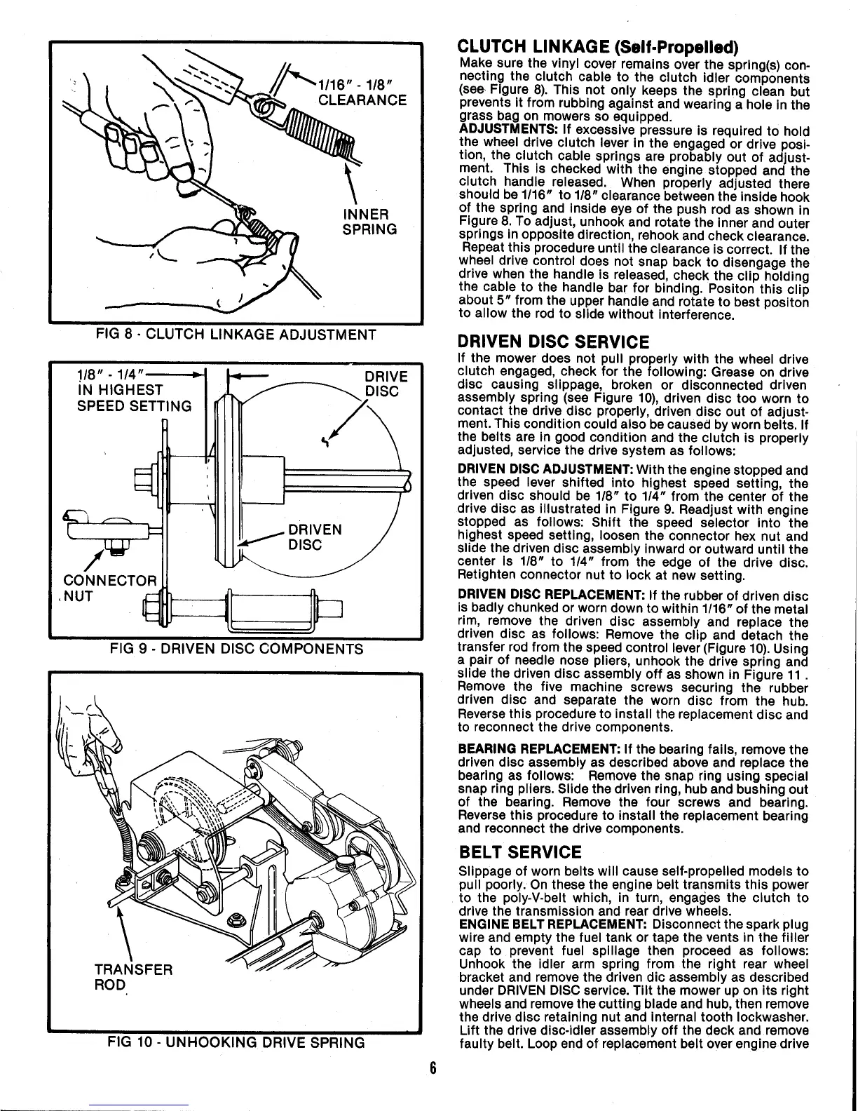 Snapper 214X4PR - Clutch Linkage; Driven Disc Service; Belt Service; Driven Disc Adjustment