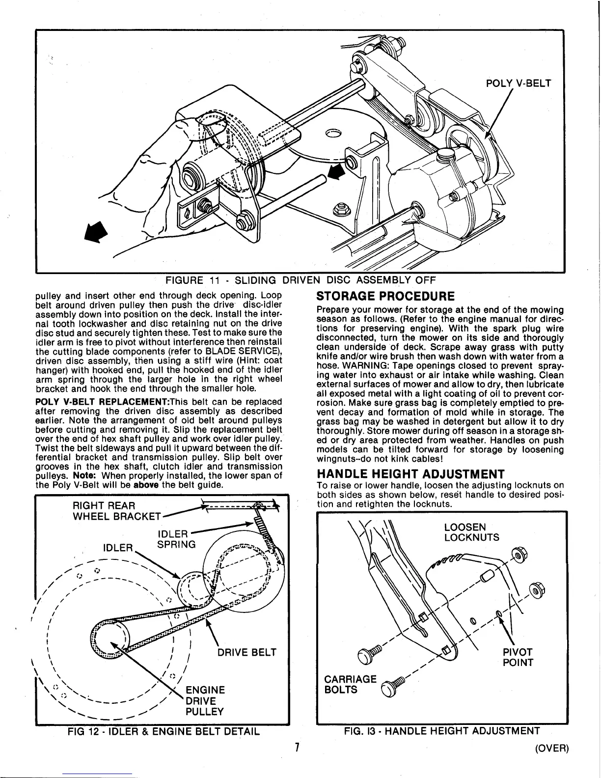 Snapper 214X4PR - Storage Procedure; Handle Height Adjustment; Poly V-Belt Replacement; Sliding Driven Disc Assembly off