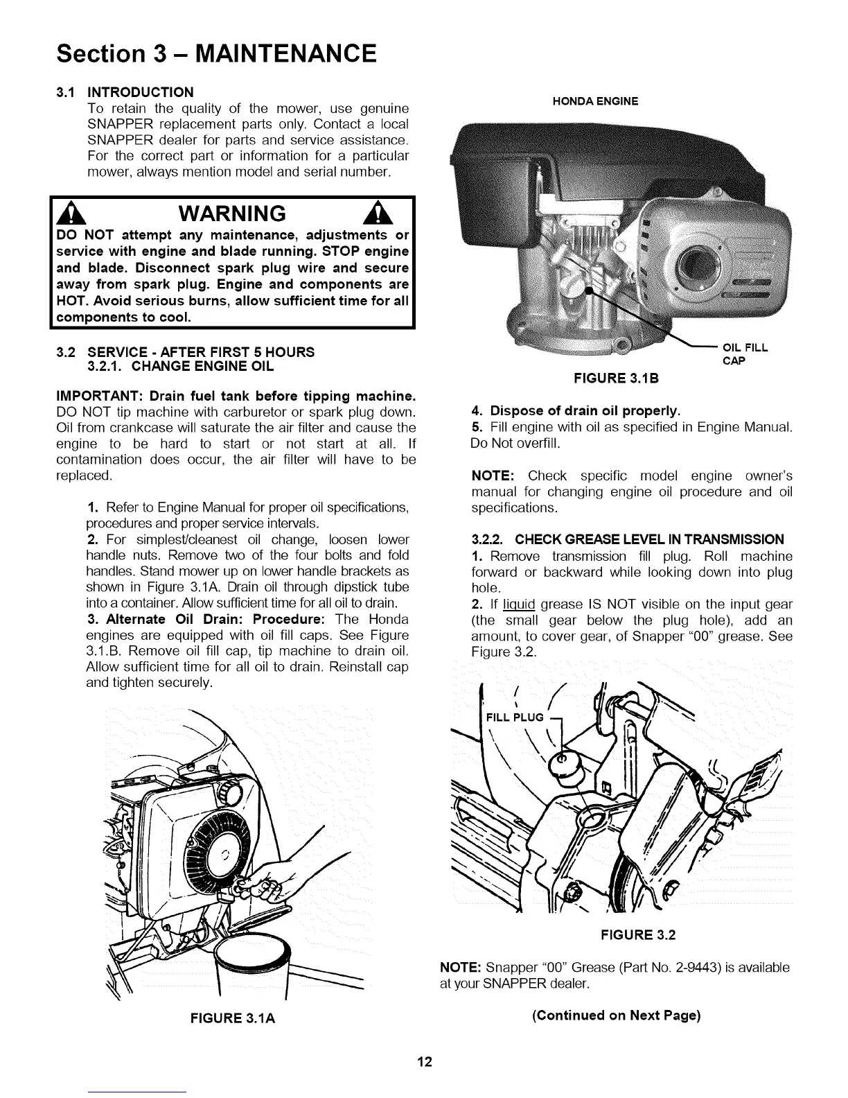 shown in Figure 3.1A. Drain oil through dipstick tube