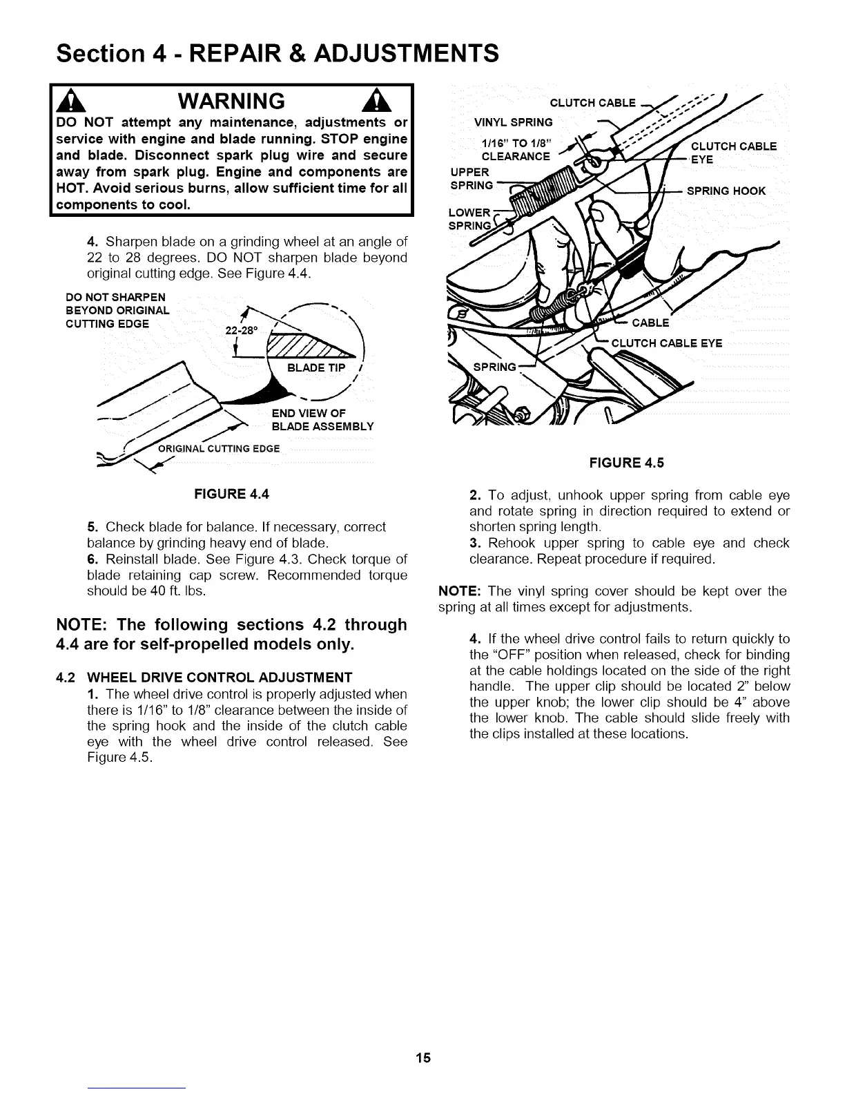 6. Reinstall blade. See Figure 4.3. Check torque of
