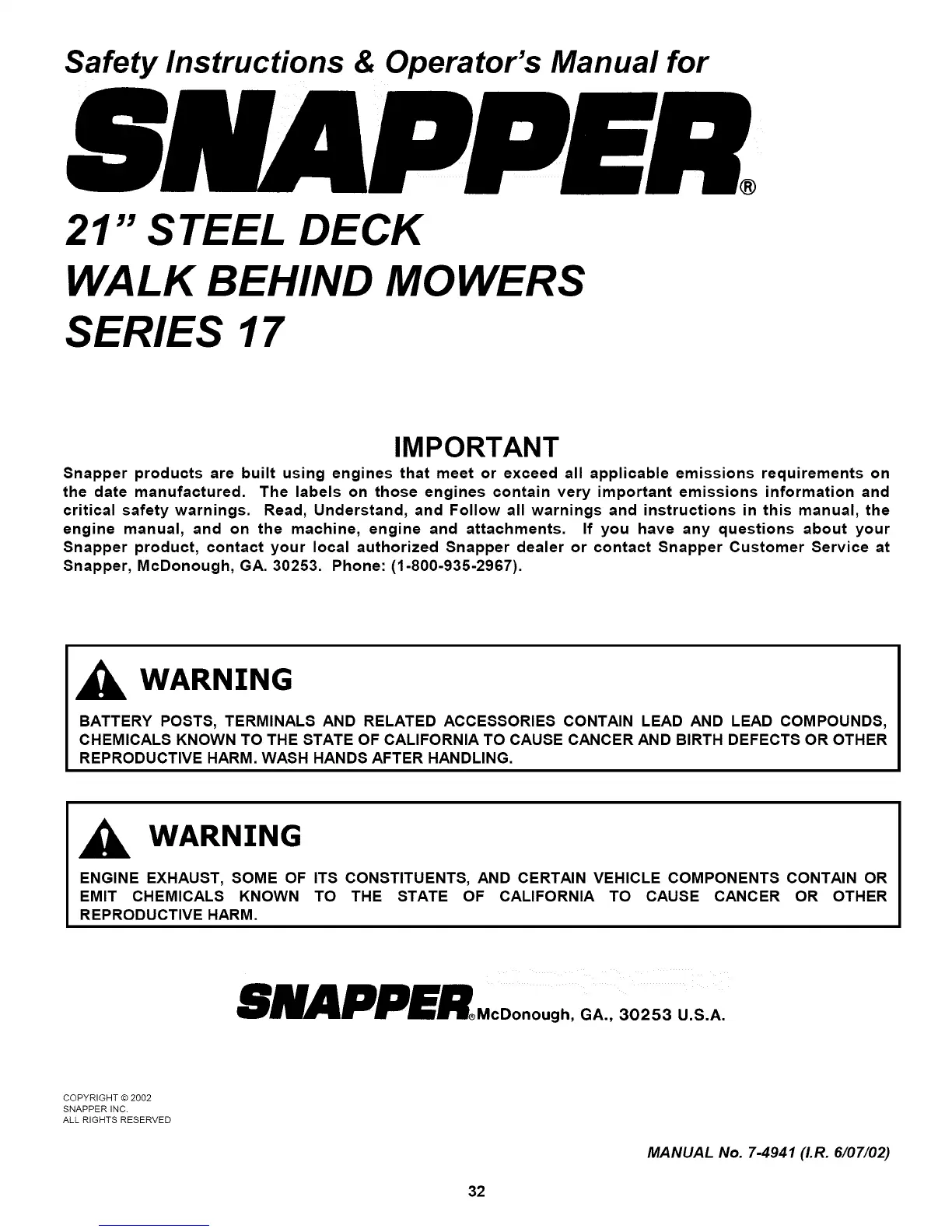 MANUAL No. 7-4941 (I.R. 6/07/02)
