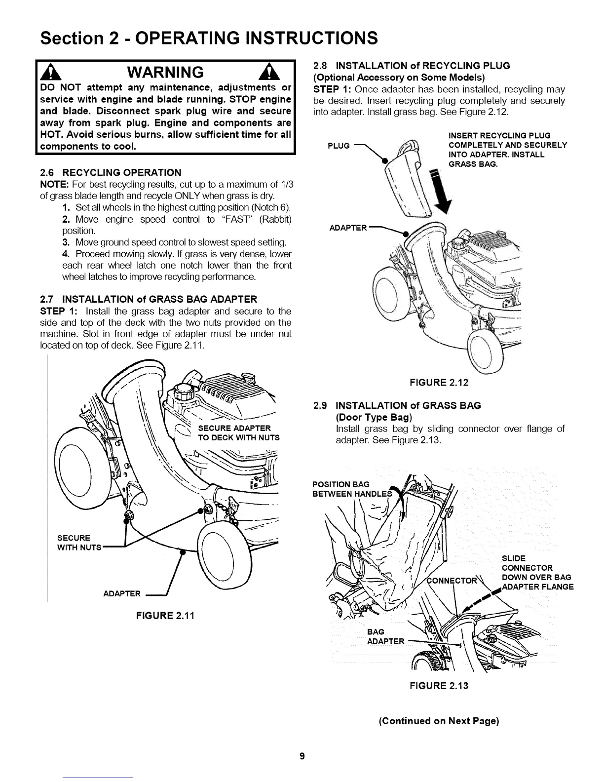2.7 INSTALLATION of GRASS BAG ADAPTER