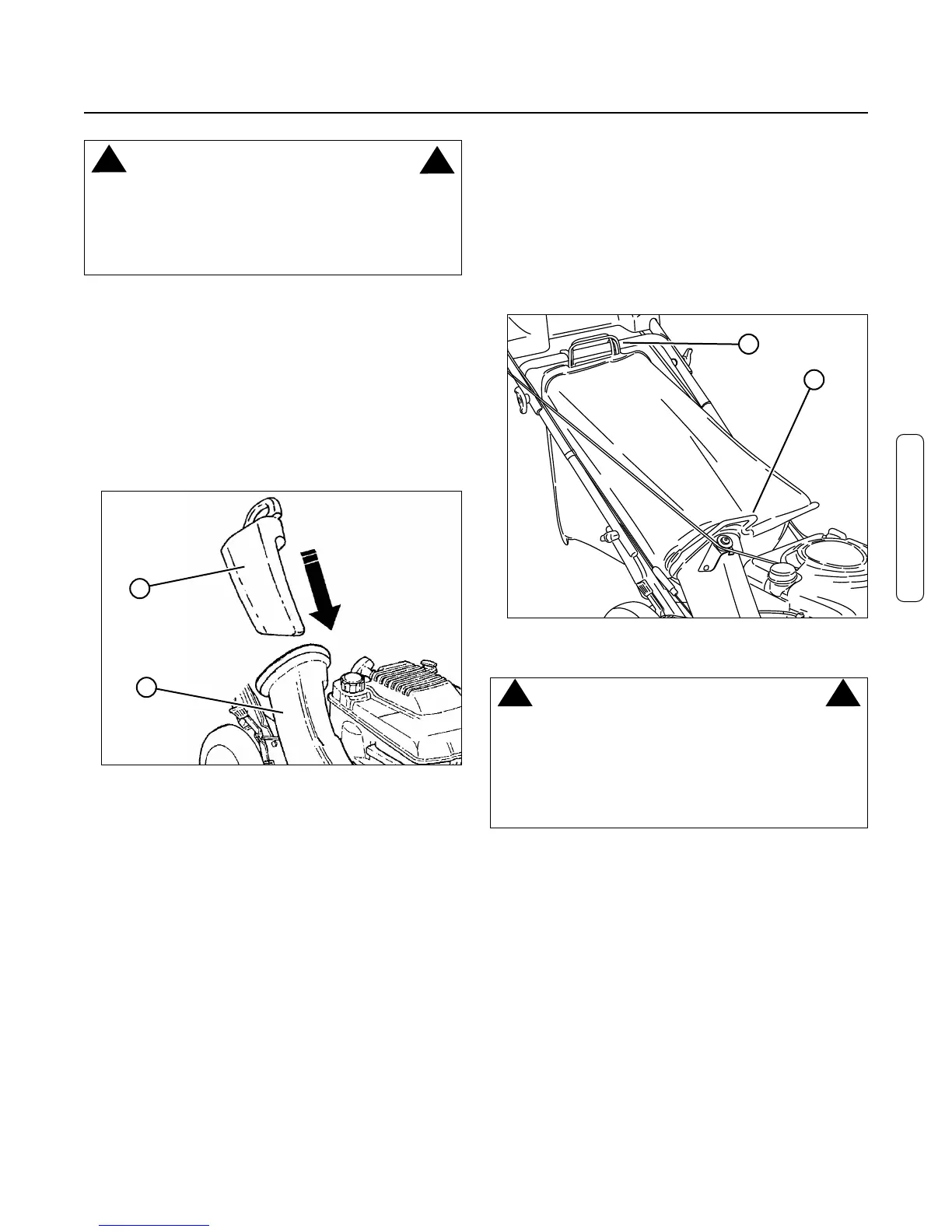 1. Install the grass bag adapter. Refer to the Section