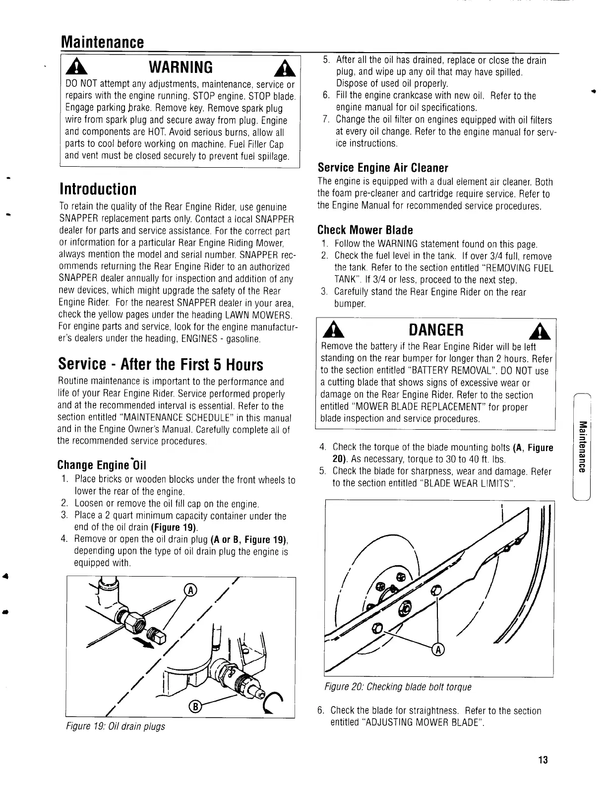 Snapper 23 Series - Interlock System Check; Reverse Lockout Mechanism Check; Service - Every 25 Operating Hours