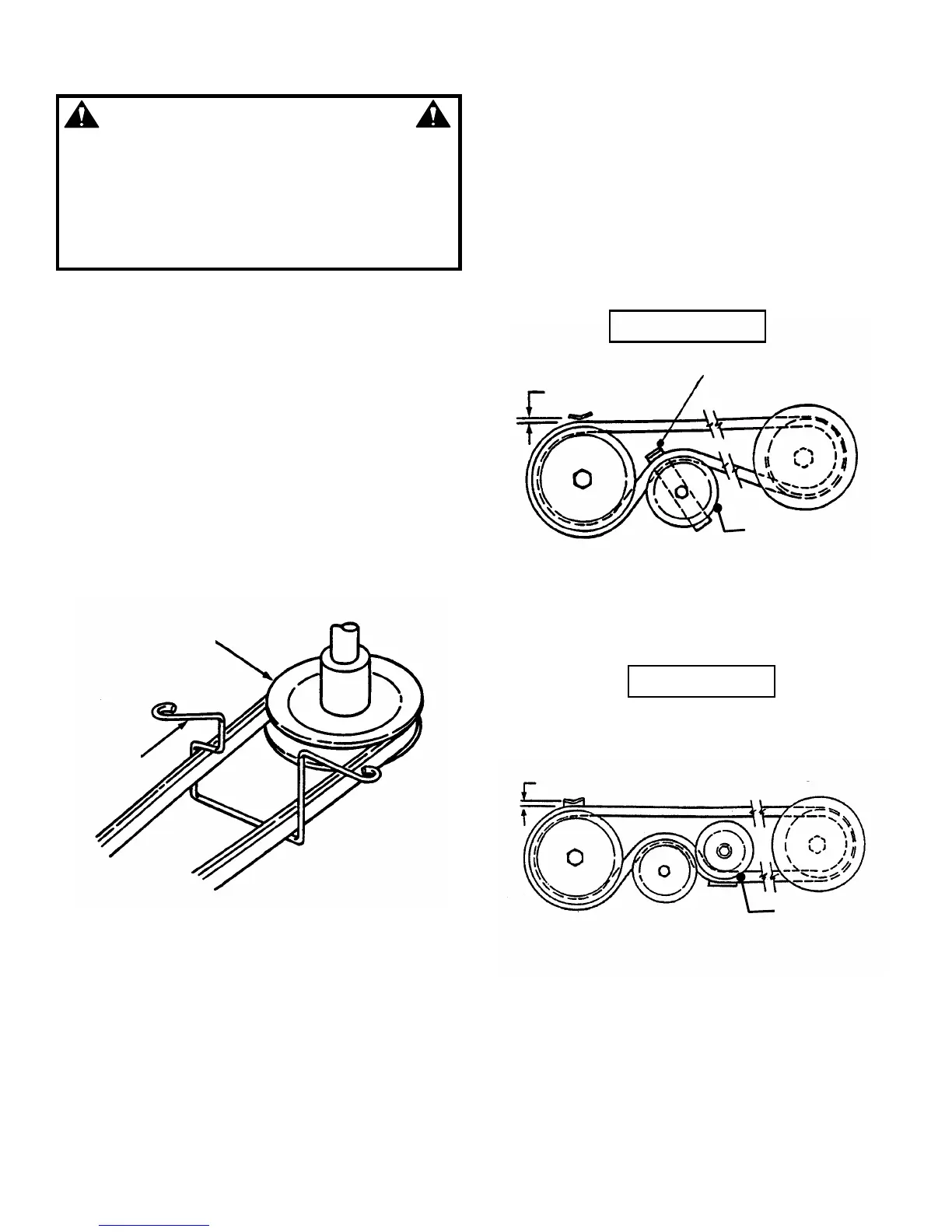 “CHECK MOWER DRIVE BELT”. Replace belt if signs