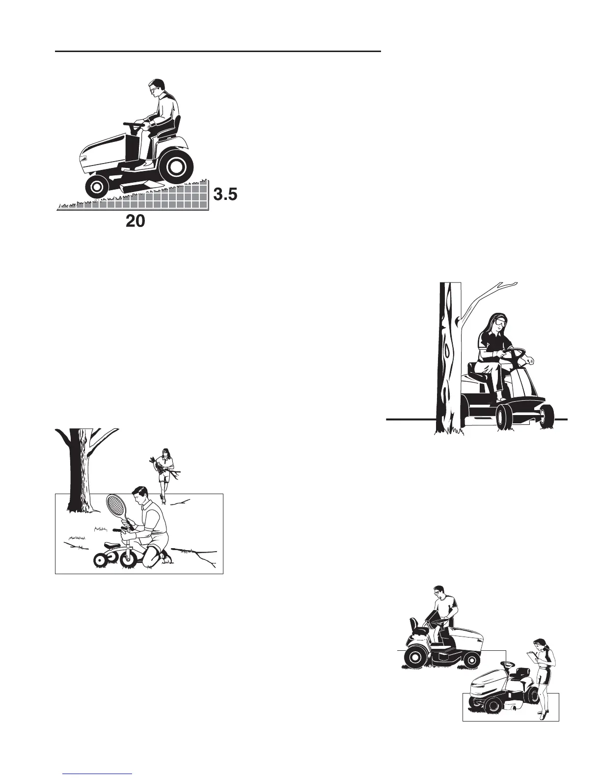 slope greater than a 3.5 foot rise over a 20 foot length. Always drive up