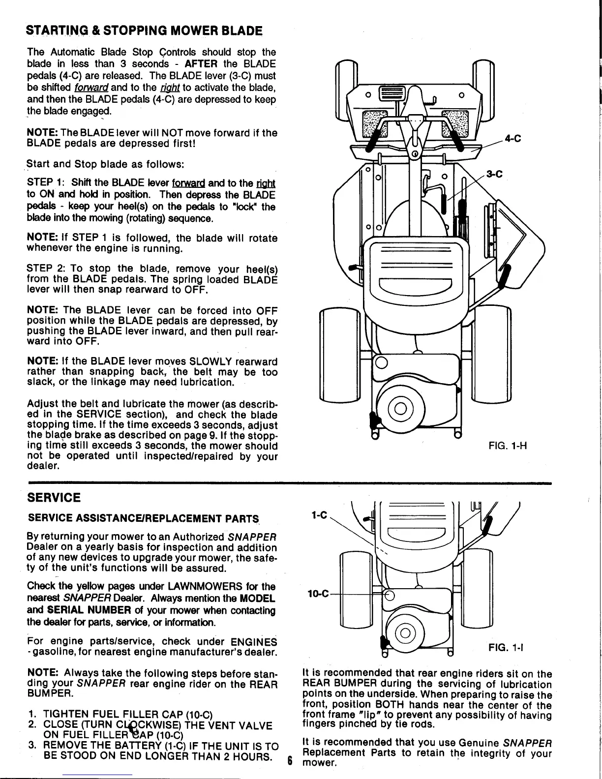 Snapper 250612T - Blade Operation and Service; Starting and Stopping Mower Blade; Service Assistance and Parts