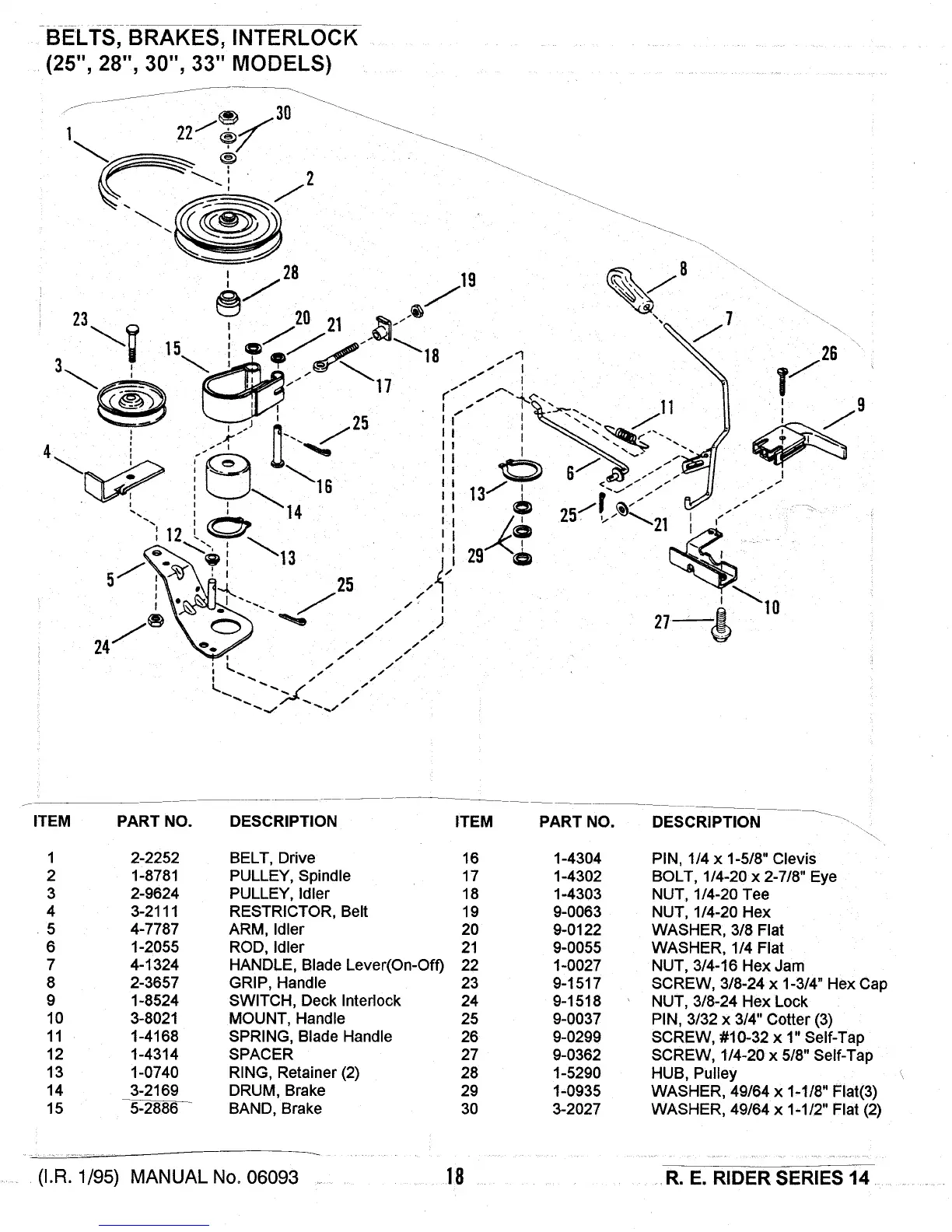 Snapper 250814BE - Belts, Brakes, and Interlock System