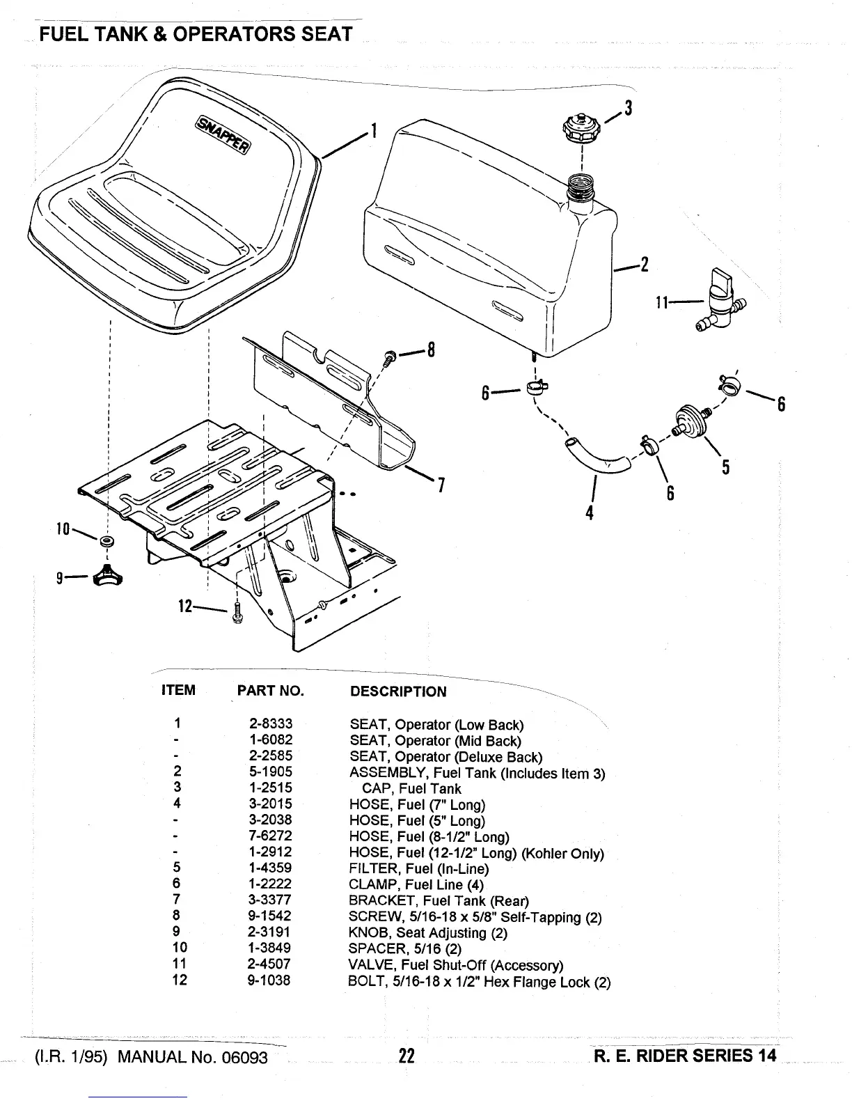 Snapper 250814BE - Fuel Tank and Operator Seat Components