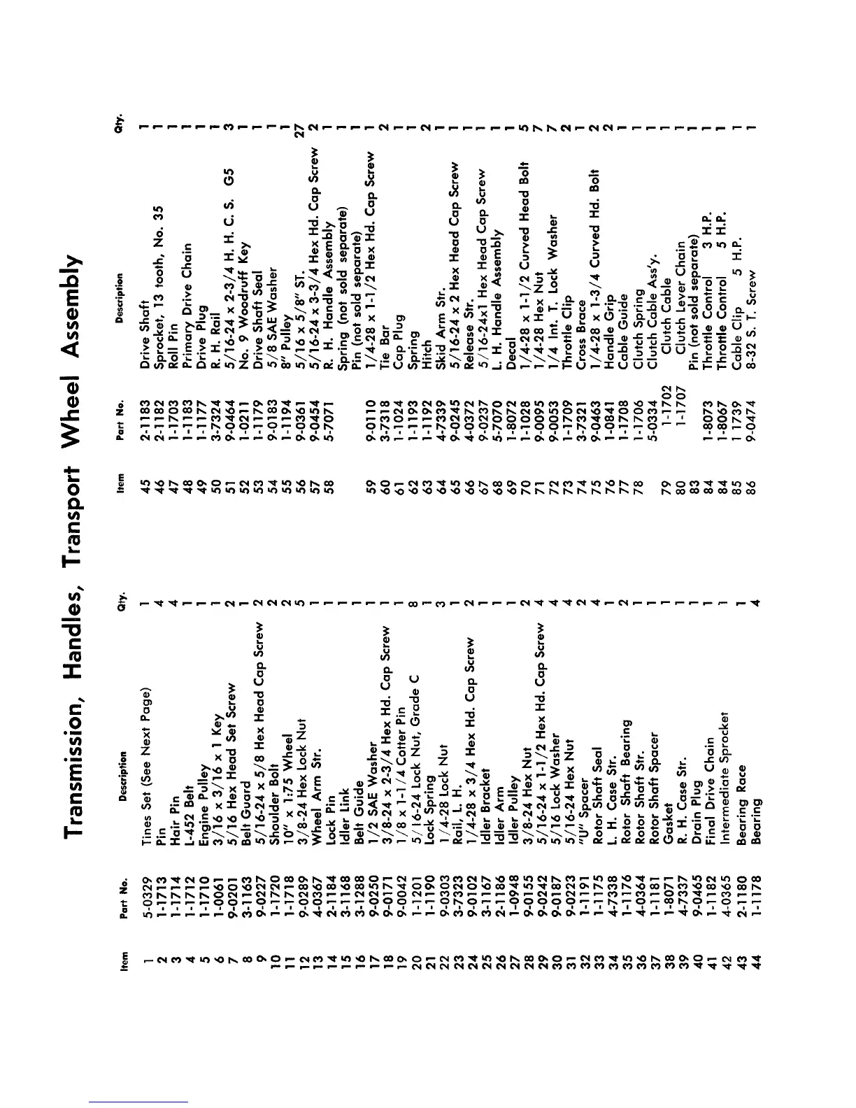 Snapper 300-500 - Parts List (Transmission, Handles, Wheel Assembly, Tines Set)
