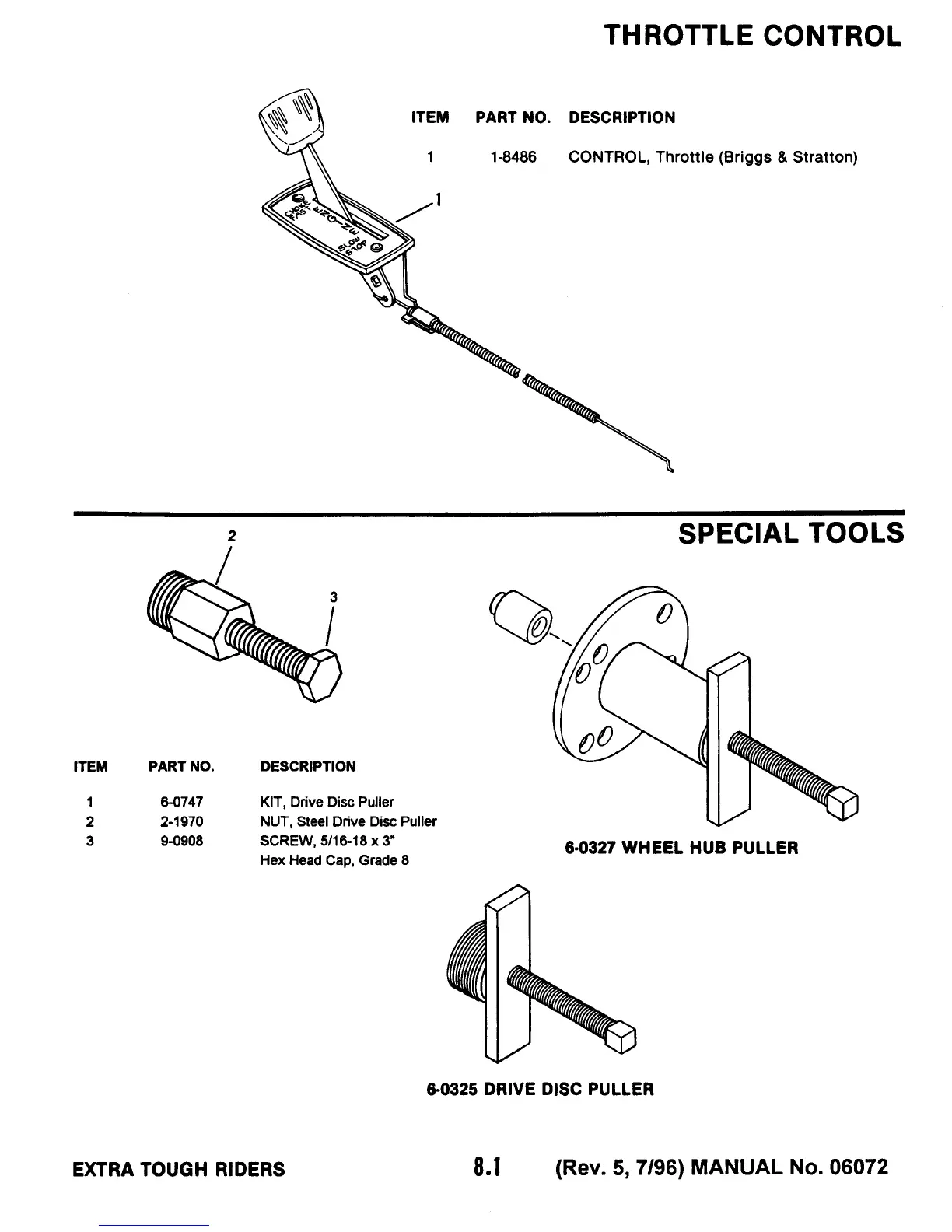 Snapper 33115SC - Throttle Control; Special Tools