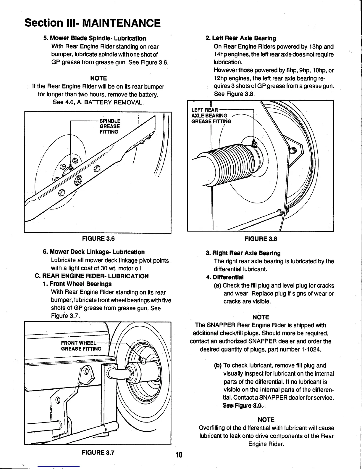 Snapper 331414KVE - Rear Engine Rider - Lubrication; Mower Blade Spindle - Lubrication; Left;Right Rear Axle Bearing; Differential