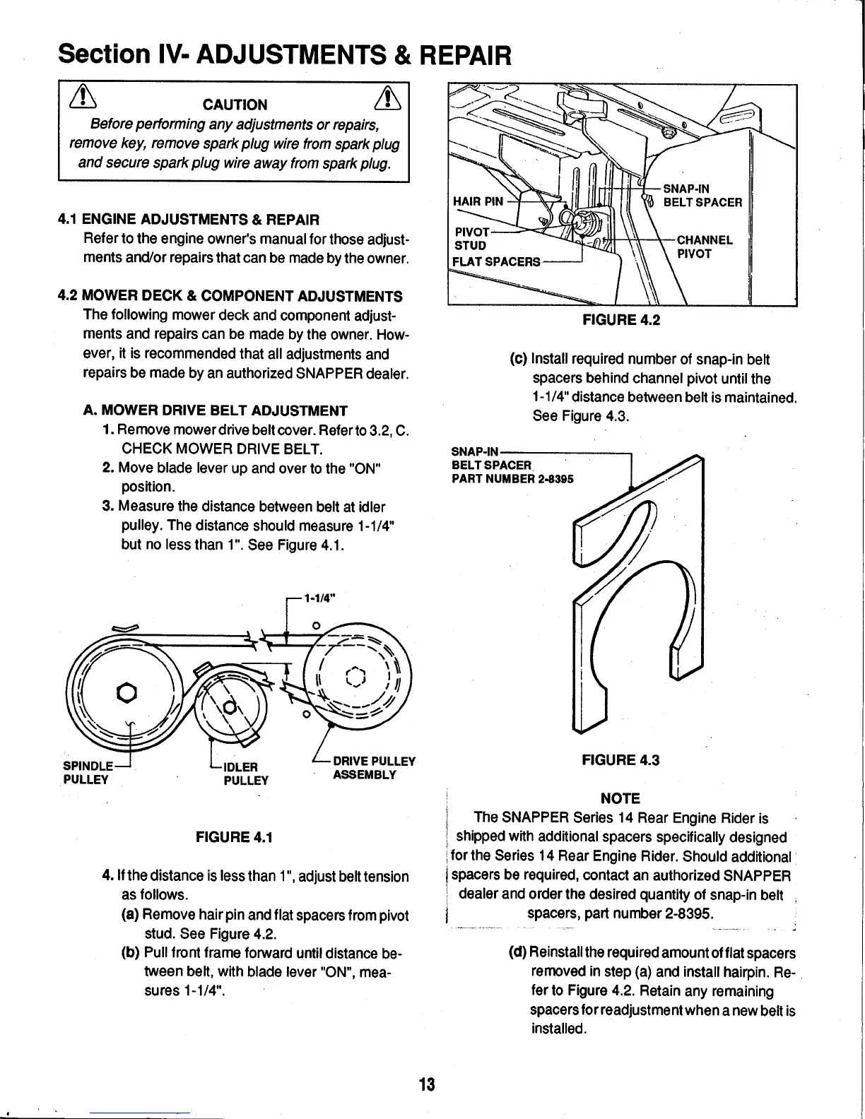 Snapper 331414KVE - Engine Adjustments & Repair; Mower Deck & Component Adjustments; Mower Drive Belt Adjustment