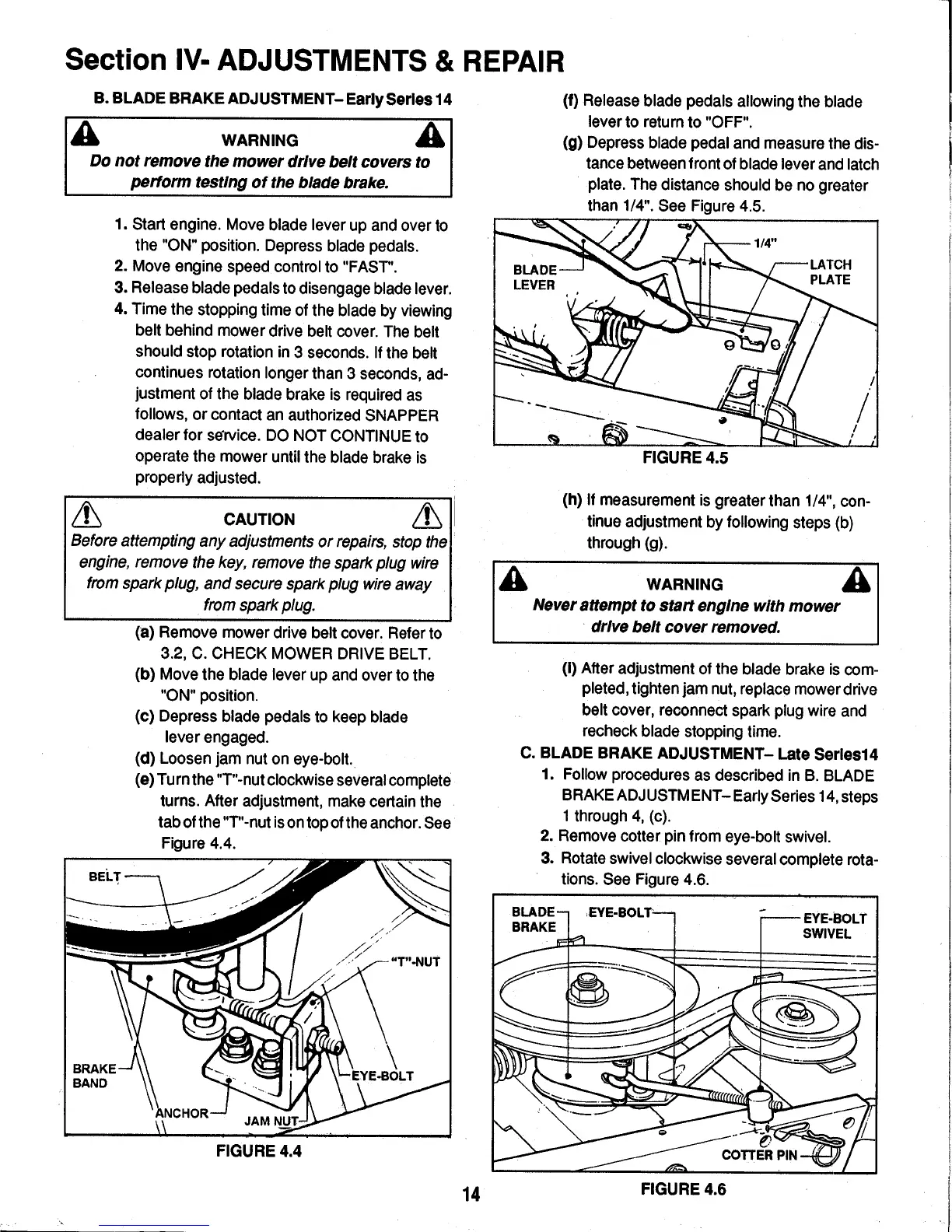 Snapper 331414KVE - Blade Brake Adjustment