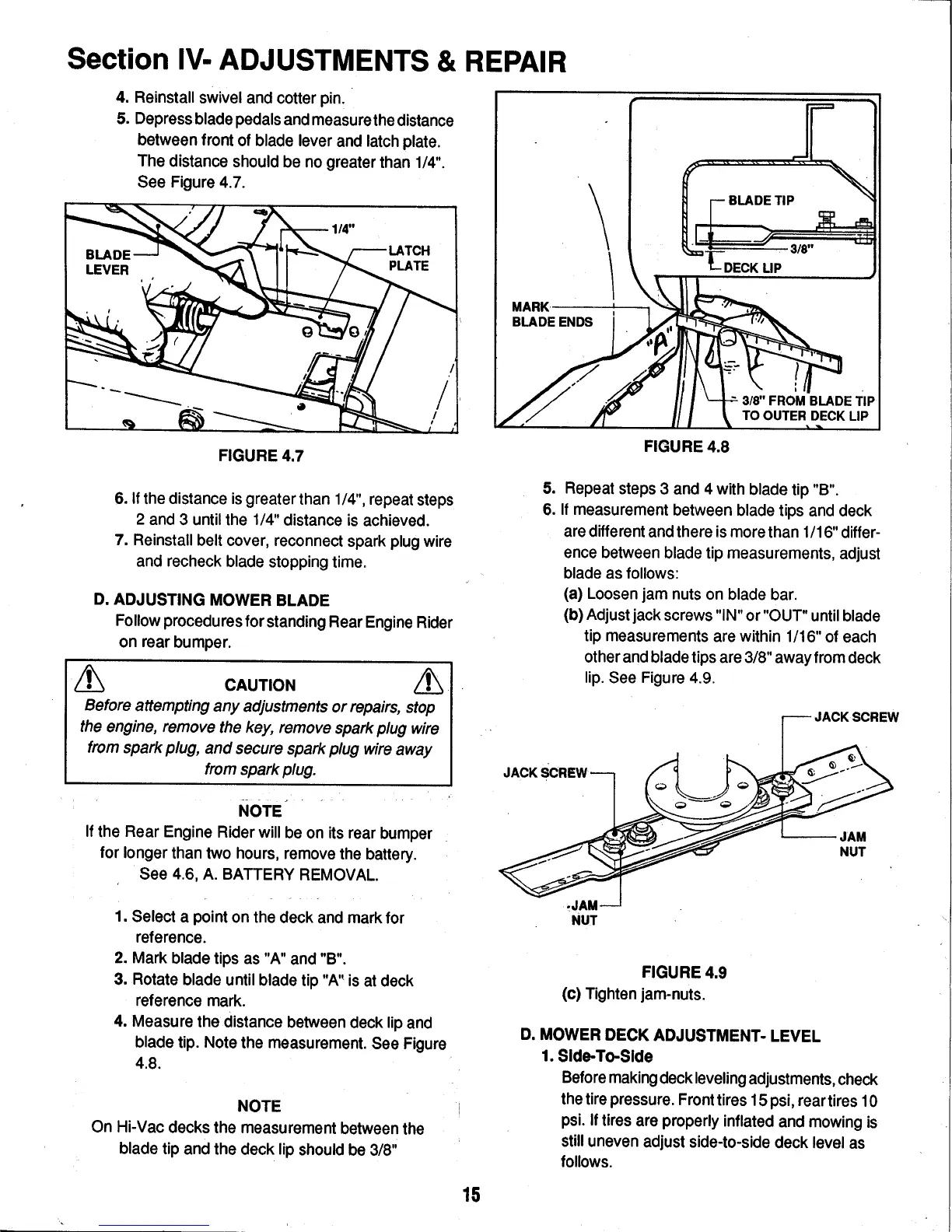 Snapper 331414KVE - Adjusting Mower Blade; Mower Deck Adjustment - Level