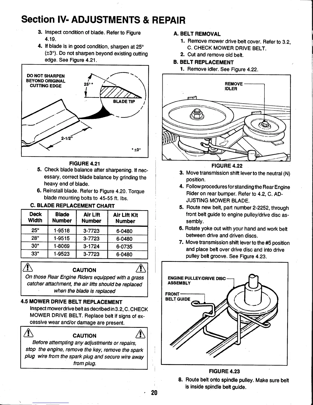 Snapper 331414KVE - Mower Drive Belt Replacement; Blade Replacement Chart; Belt Removal;Replacement