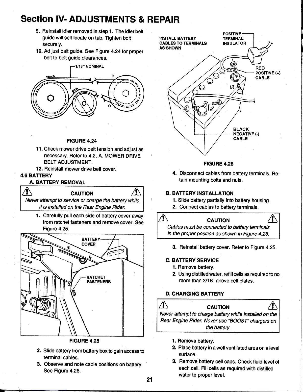 Snapper 331414KVE - Battery Removal;Installation; Battery Service; Charging Battery