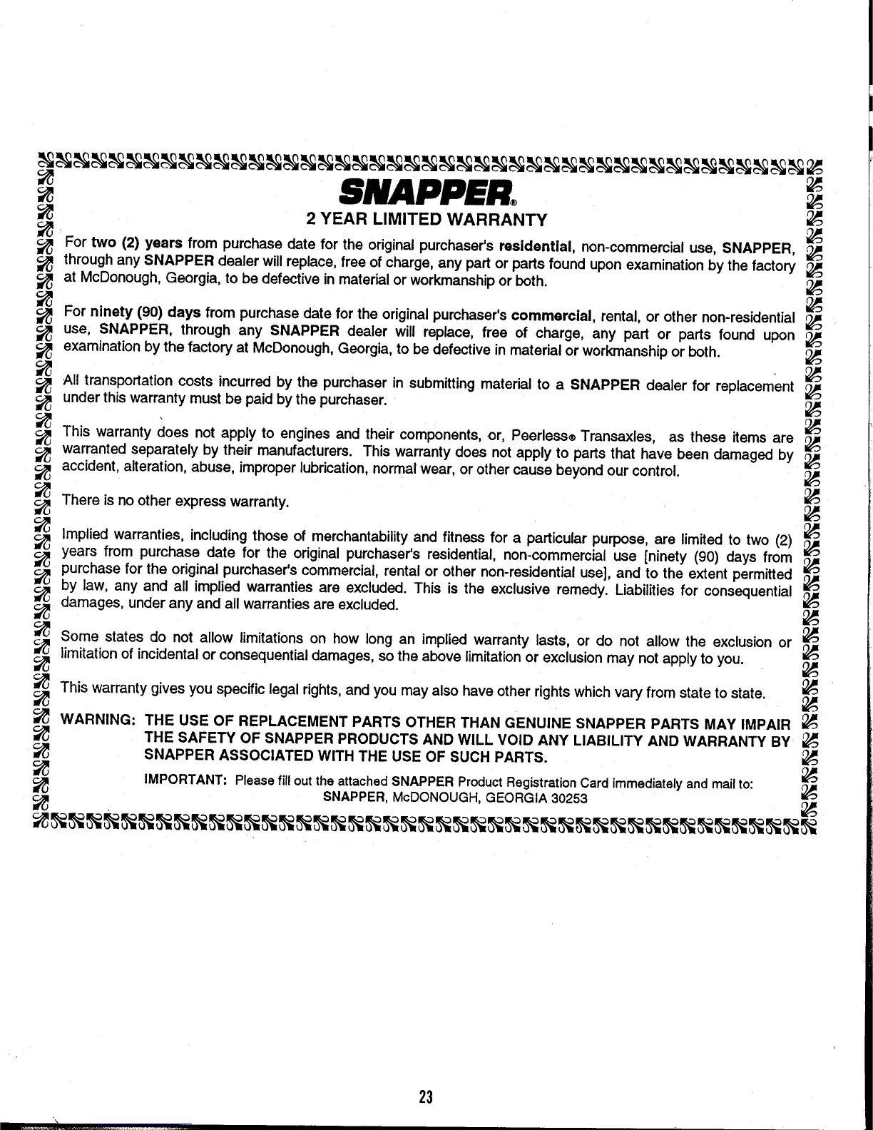 Snapper 331414KVE - 2 Year Limited Warranty