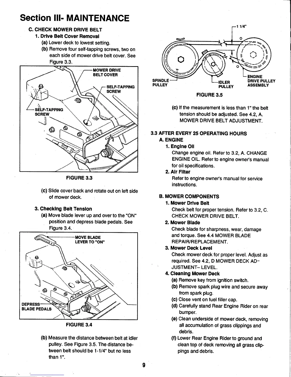 Snapper 331414KVE - After Every 25 Operating Hours; Check Mower Drive Belt; Mower Components