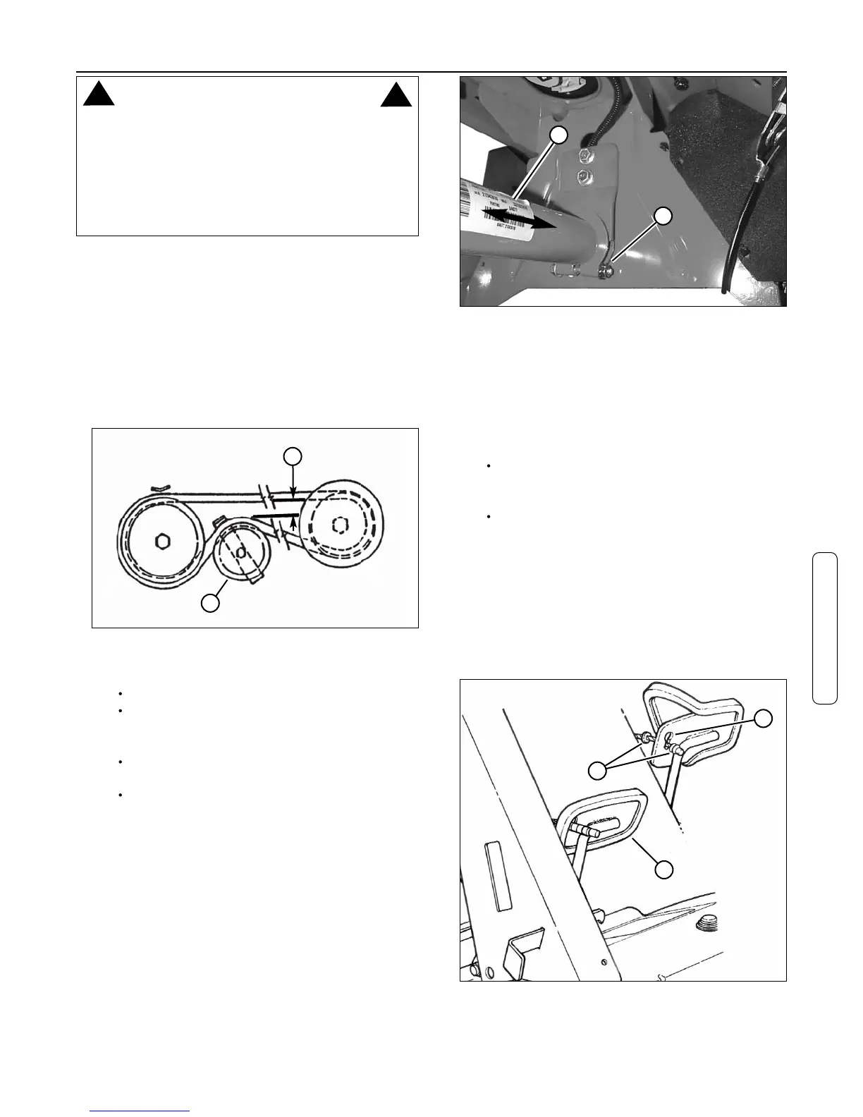 tion entitled “CHECK MOWER DRIVE BELT”.