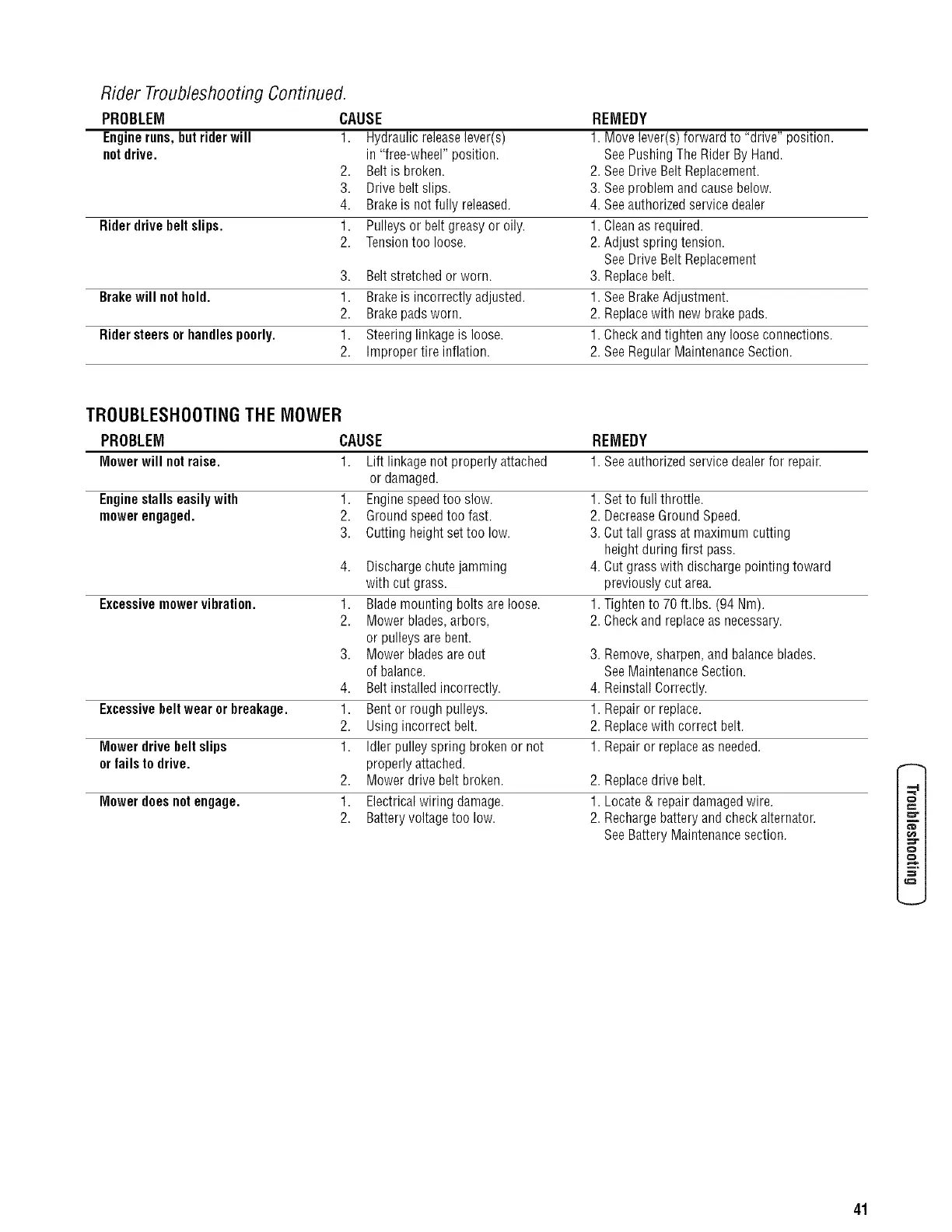 TROUBLESHOOTINGTHE MOWER