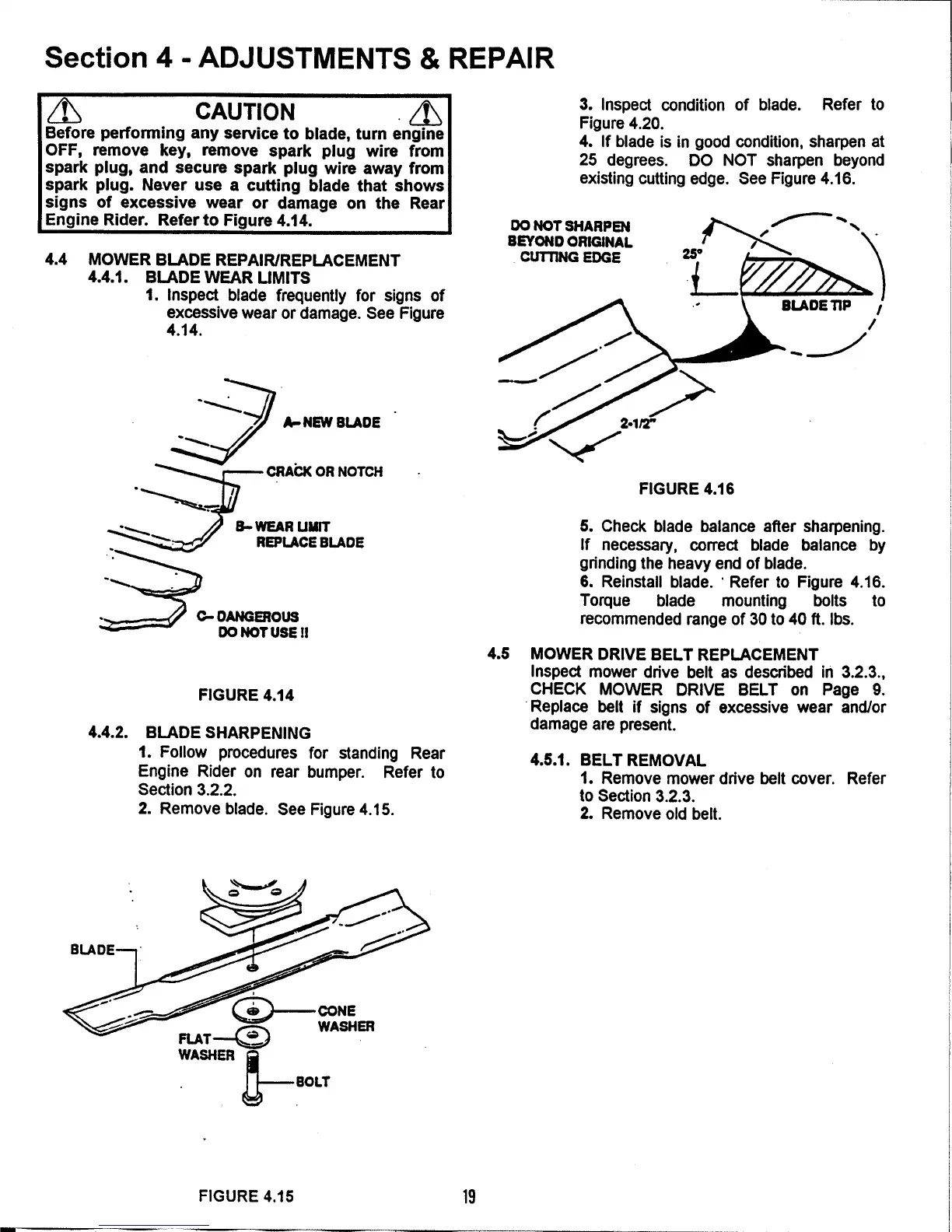 Snapper 421616BVE - Mower Blade Repair;Replacement; Blade Wear Limits; Blade Sharpening; Mower Drive Belt Replacement