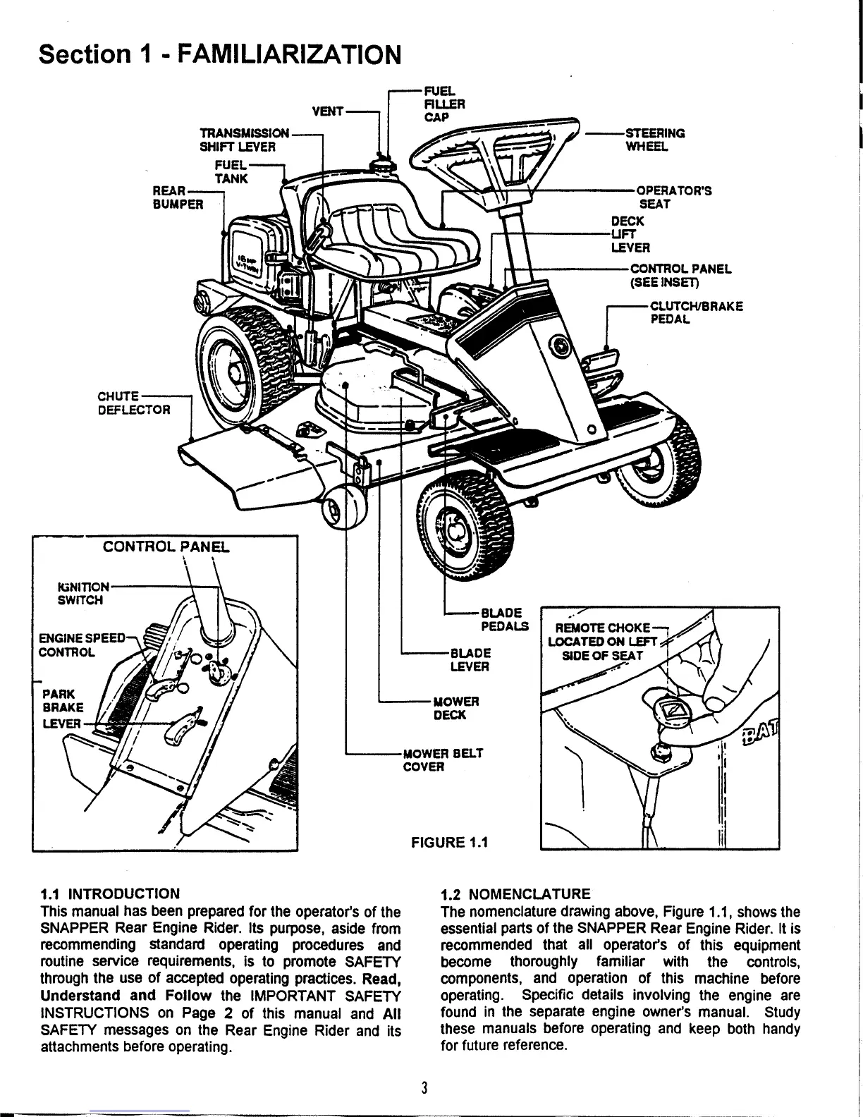 Snapper 421616BVE - Familiarization; Introduction; Nomenclature; Control Panel