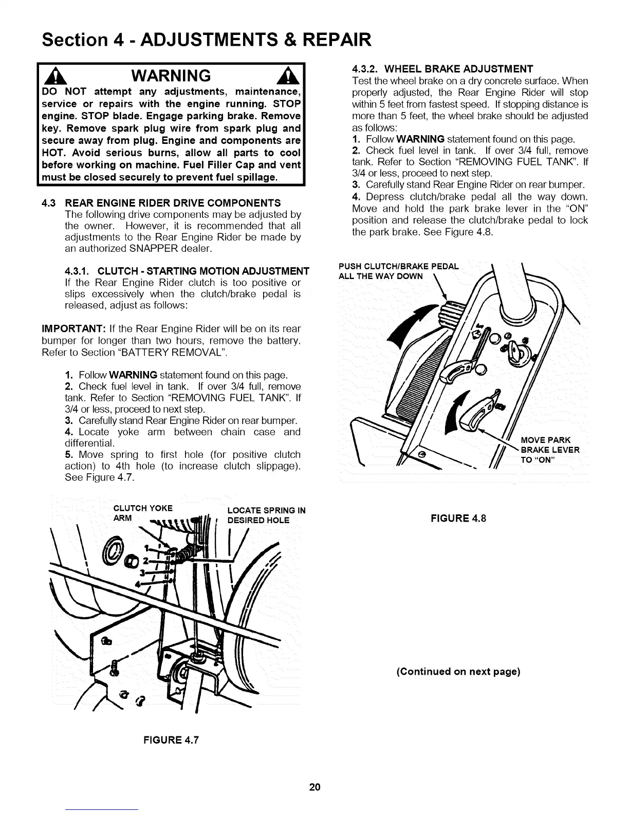 the park brake. See Figure 4.8.