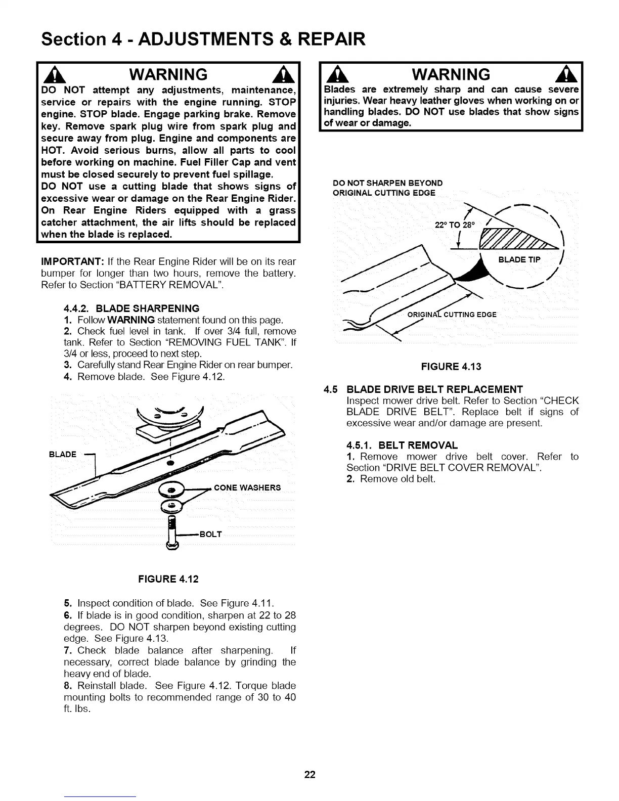 4. Remove blade. See Figure 4.12.
