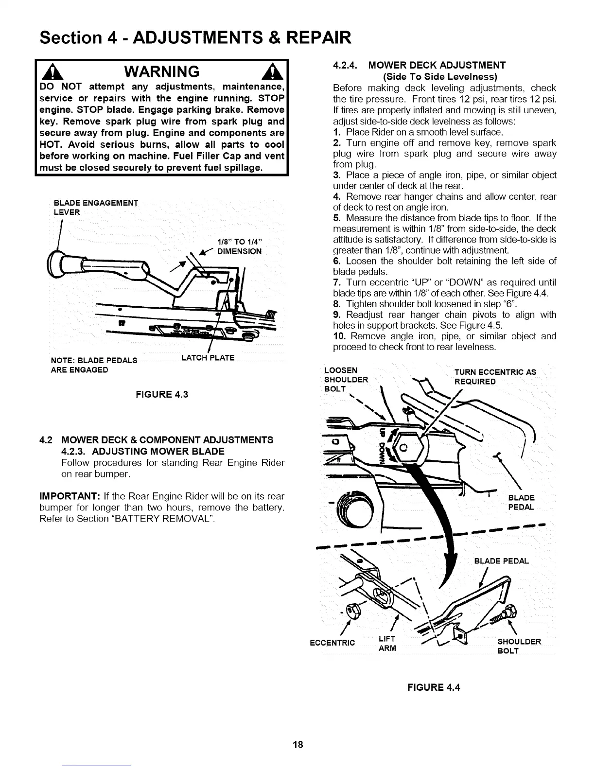 4.2 MOWER DECK & COMPONENT ADJUSTMENTS