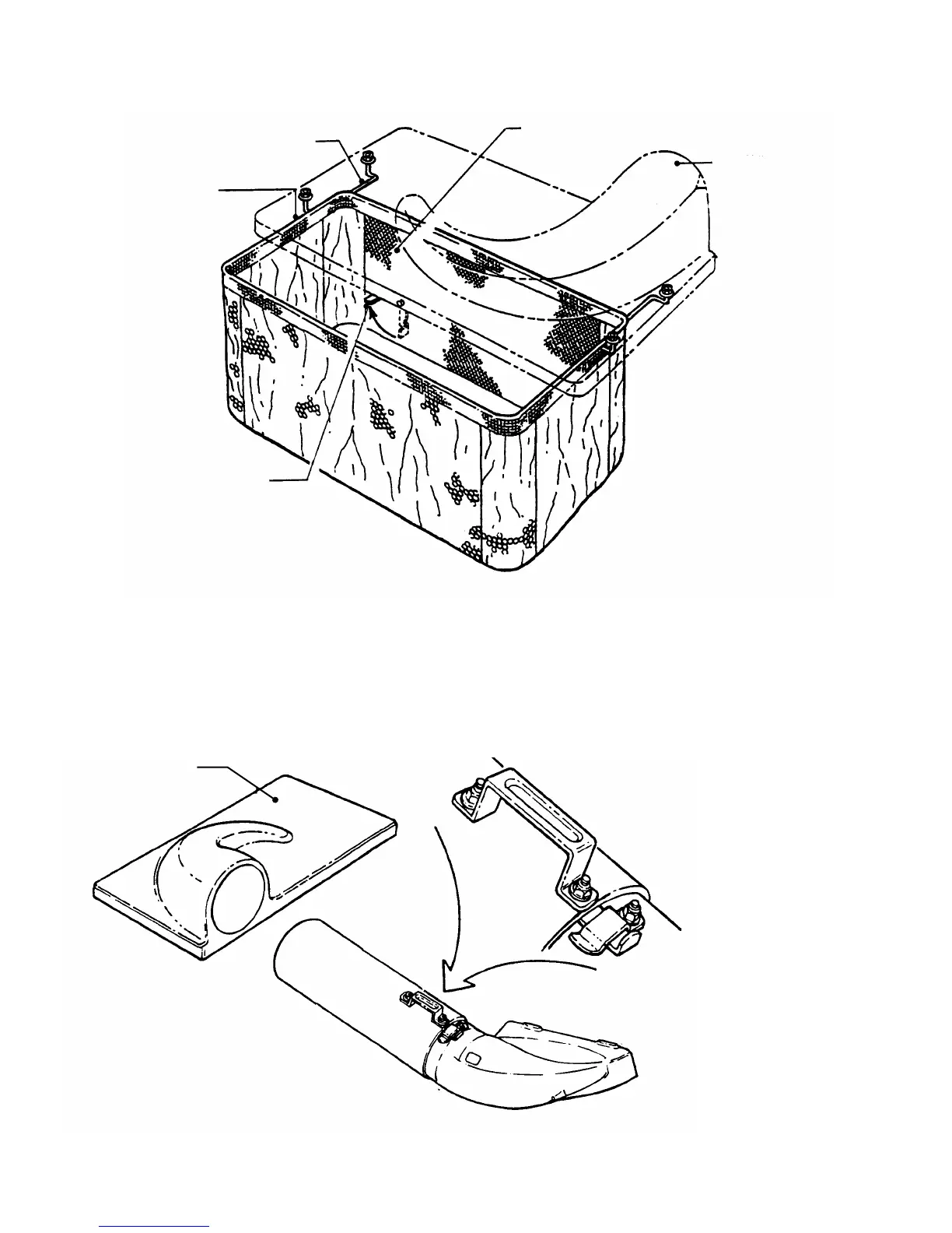 B. Slide lower end of grass tube over adapter end and rotate tube towards mower to secure handle hook under latch. See