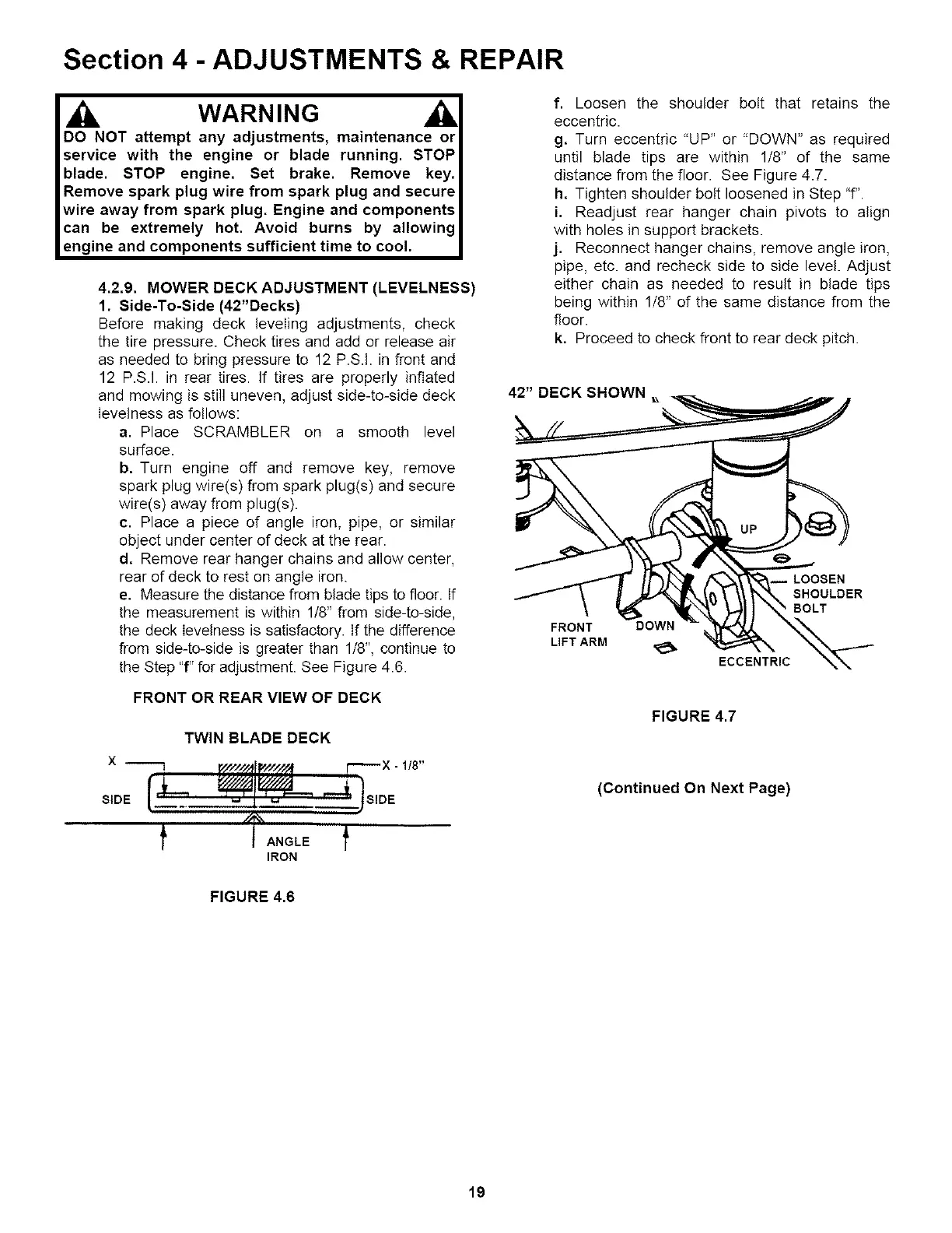 4.2.9, MOWER DECK ADJUSTMENT (LEVELNESS)
