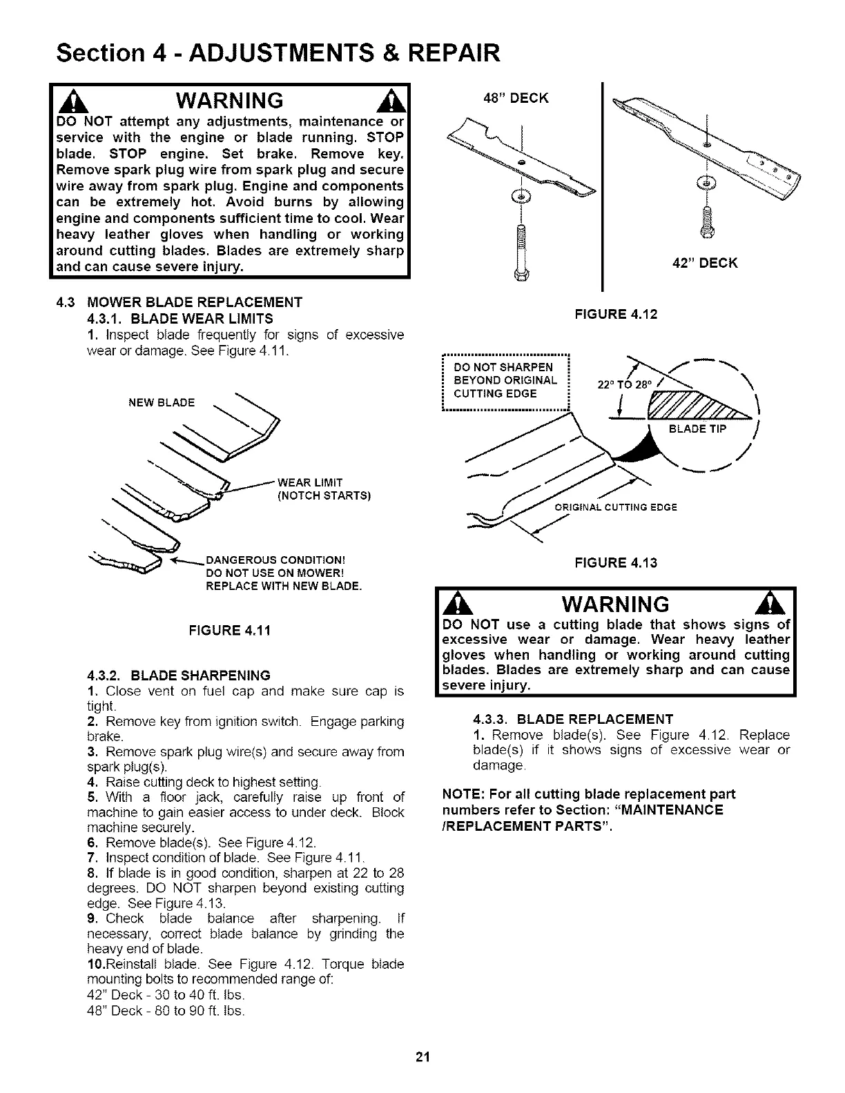4.3 MOWER BLADE REPLACEMENT