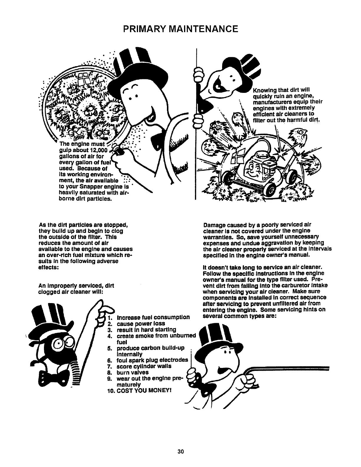 entering the engine. Some servicing hints on